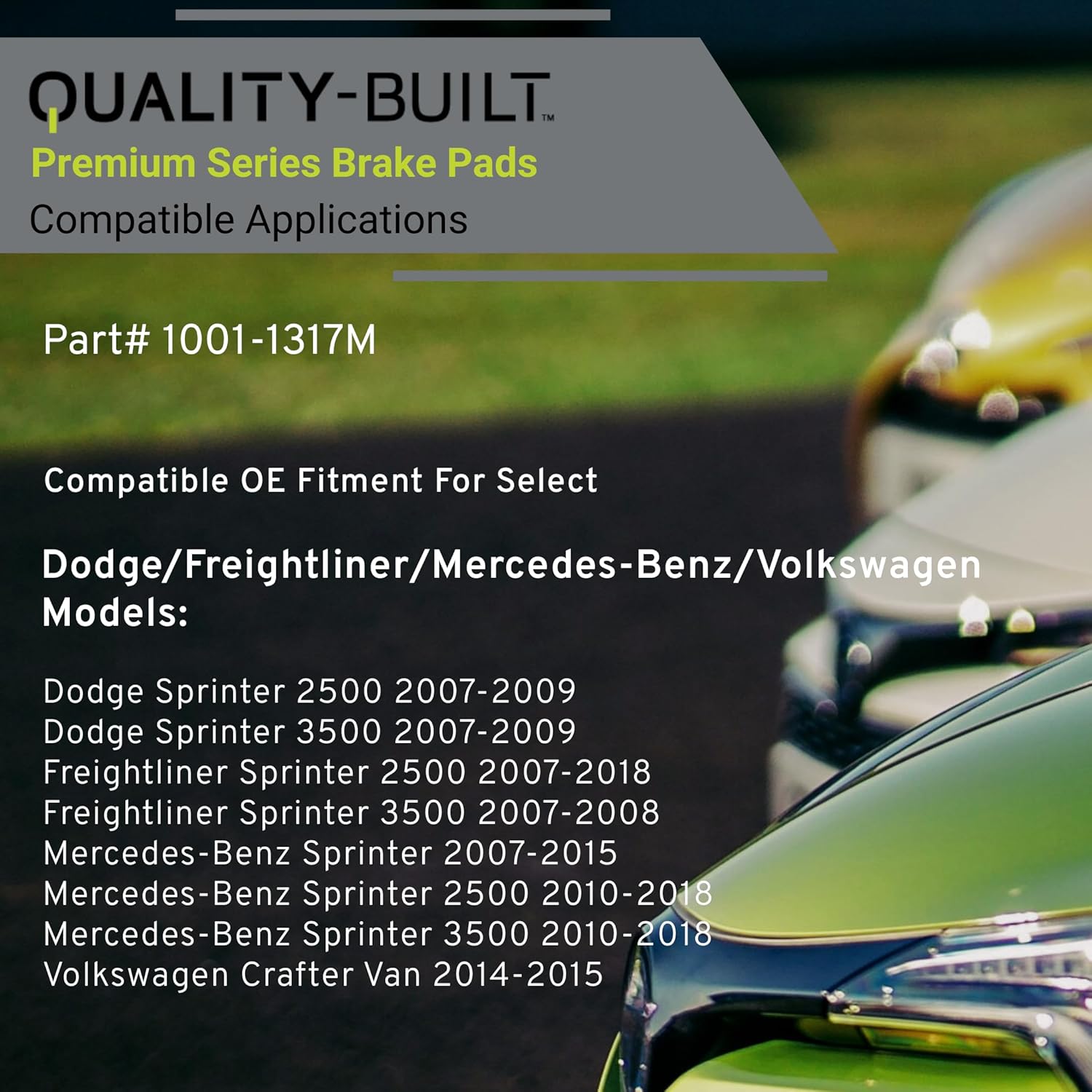Premium Semi-Metallic Rear Brake Pads (1001-1317M) Compatible with 2007-2018 Dodge/Freightliner/Mercedes-Benz/Volkswagen (Crafter Van/Sprinter/Sprinter 2500/Sprinter 3500)