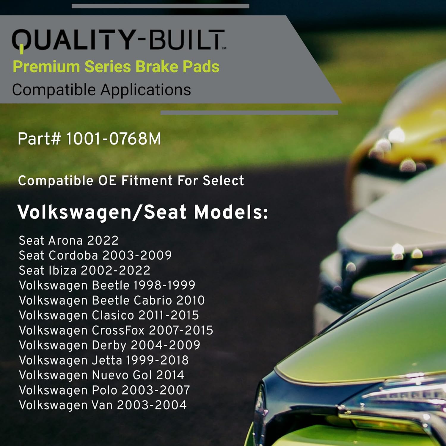 Premium Semi-Metallic Front Brake Pads (1001-0768M) Compatible with 1998-2022 Seat/Volkswagen (Arona/Beetle/Beetle Cabrio/Clasico/Cordoba/CrossFox/Derby/Ibiza/Jetta/Nuevo Gol/Polo/Van)