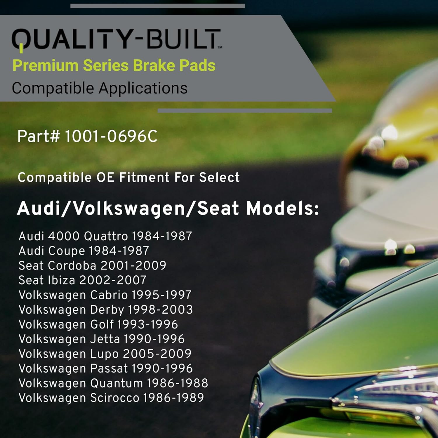 Premium Ceramic Front Brake Pads (1001-0696C) Compatible with 1984-2009 Audi/Seat/Volkswagen (4000 Quattro/Cabrio/Cordoba/Coupe/Derby/Golf/Ibiza/Jetta/Lupo/Passat/Quantum/Scirocco)
