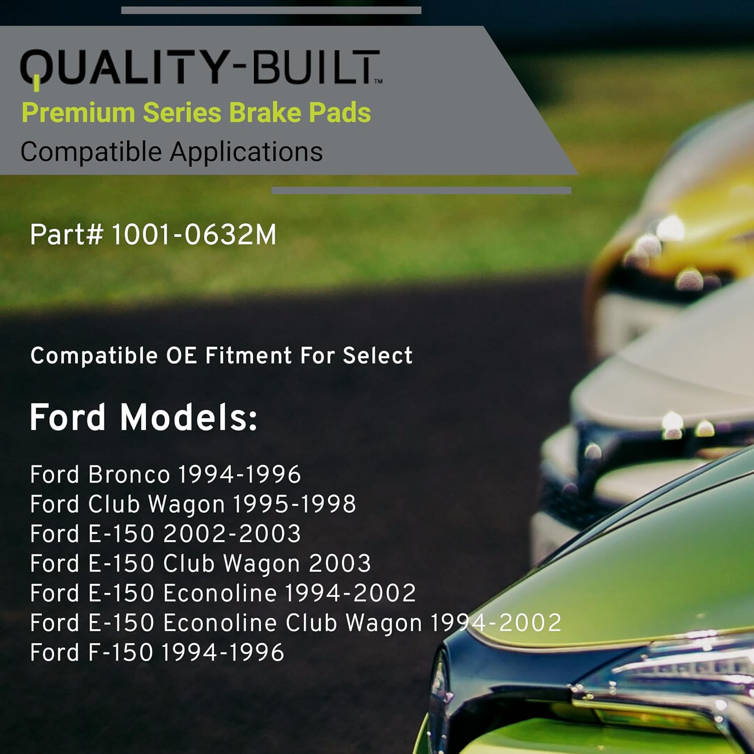 Premium Semi-Metallic Front Brake Pads (1001-0632M) Compatible with 1994-2003 Ford (Bronco/Club Wagon/E-150/E-150 Club Wagon/E-150 Econoline/E-150 Econoline Club Wagon/F-150)