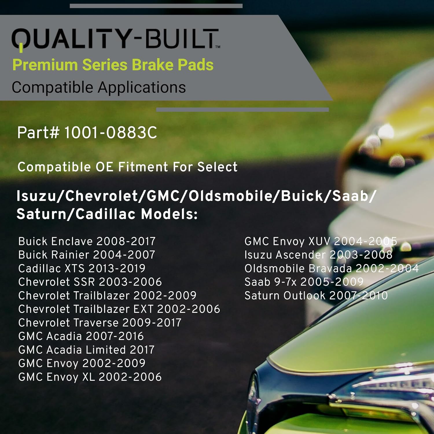 Premium Ceramic Rear Brake Pads (1001-0883C) Compatible with 2002-2019 Buick/Cadillac/Chevrolet/GMC (Acadia Limited/Ascender/Enclave/Envoy/Outlook/Rainier/SSR/Trailblazer & More)