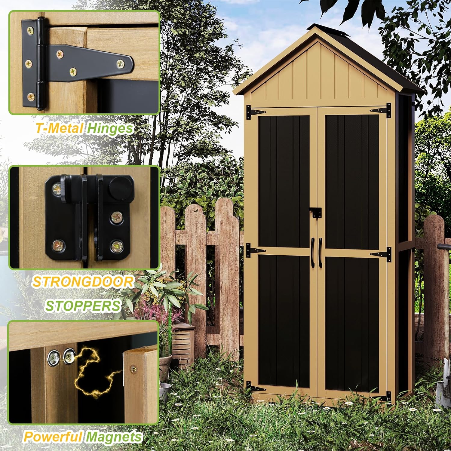 - Outdoor Storage Cabinet Built to Last-Crafted with a durable fir wood framework and rust-resistant metal panels, this cabinet combines natural strength with modern design. It's engineered to survive rain, sun, and wind while keeping your tools, gear, and essentials safe for years.