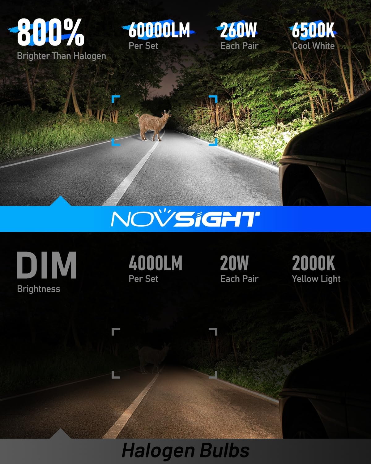 NOVSIGHT 9005 9006 LED Fog Light Bulbs,100000 Lumens 6500K Cool White Light,800% Brightness,Plug and Play, Pack of 4