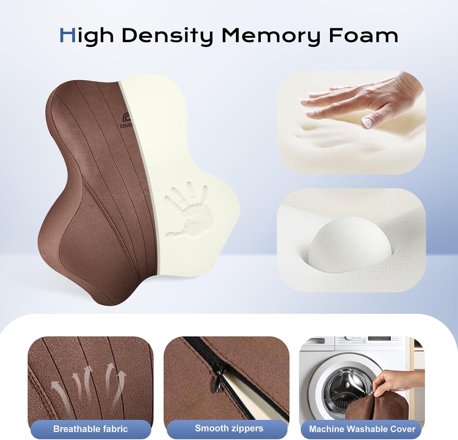 - Premium Memory Foam: The neck pillow and lumbar support kit is made of memory foam. It responds to your body pressure and precisely conforms to the curves of your neck and lower back. It offers personalized support and reduces stress on your spine. After you get out of the car, it quickly regains its original shape, ensuring long - term durability