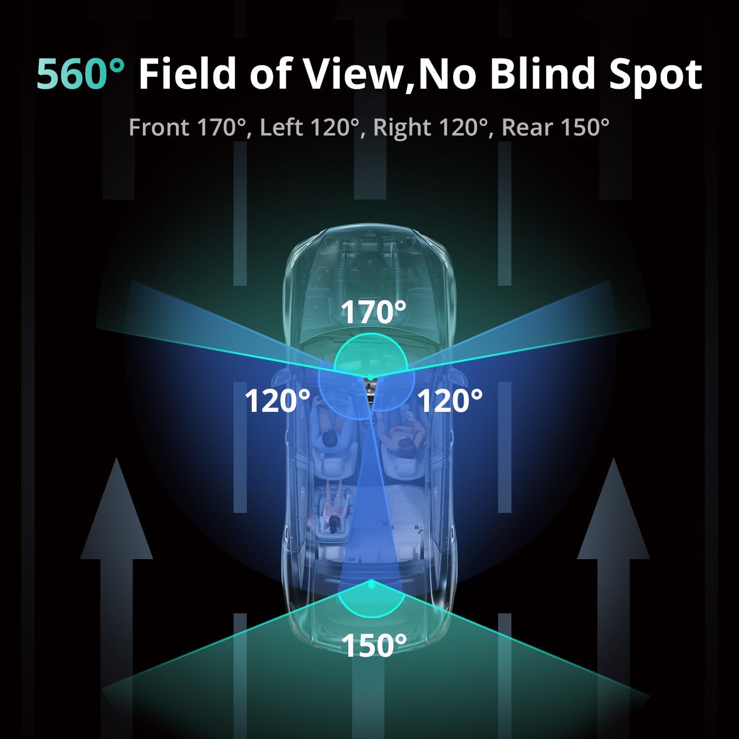 - [4 Channel Dash Cam] 3K 4 channel dash cam Compared with the traditional 2K dash cam, capturing crystal-clear license plates even at night! With a 170° front camera, dual 120° side, and 150° rear, you've got complete 560°coverage that leaves no blind spots unmonitored. All four cameras record simultaneously, giving you foolproof evidence of any incident.The side cameras feature a detachable magnetic mount, allowing you to switch between 3 channel (4K+1080P*2) or daul dash cam (4K+1080P) modes.