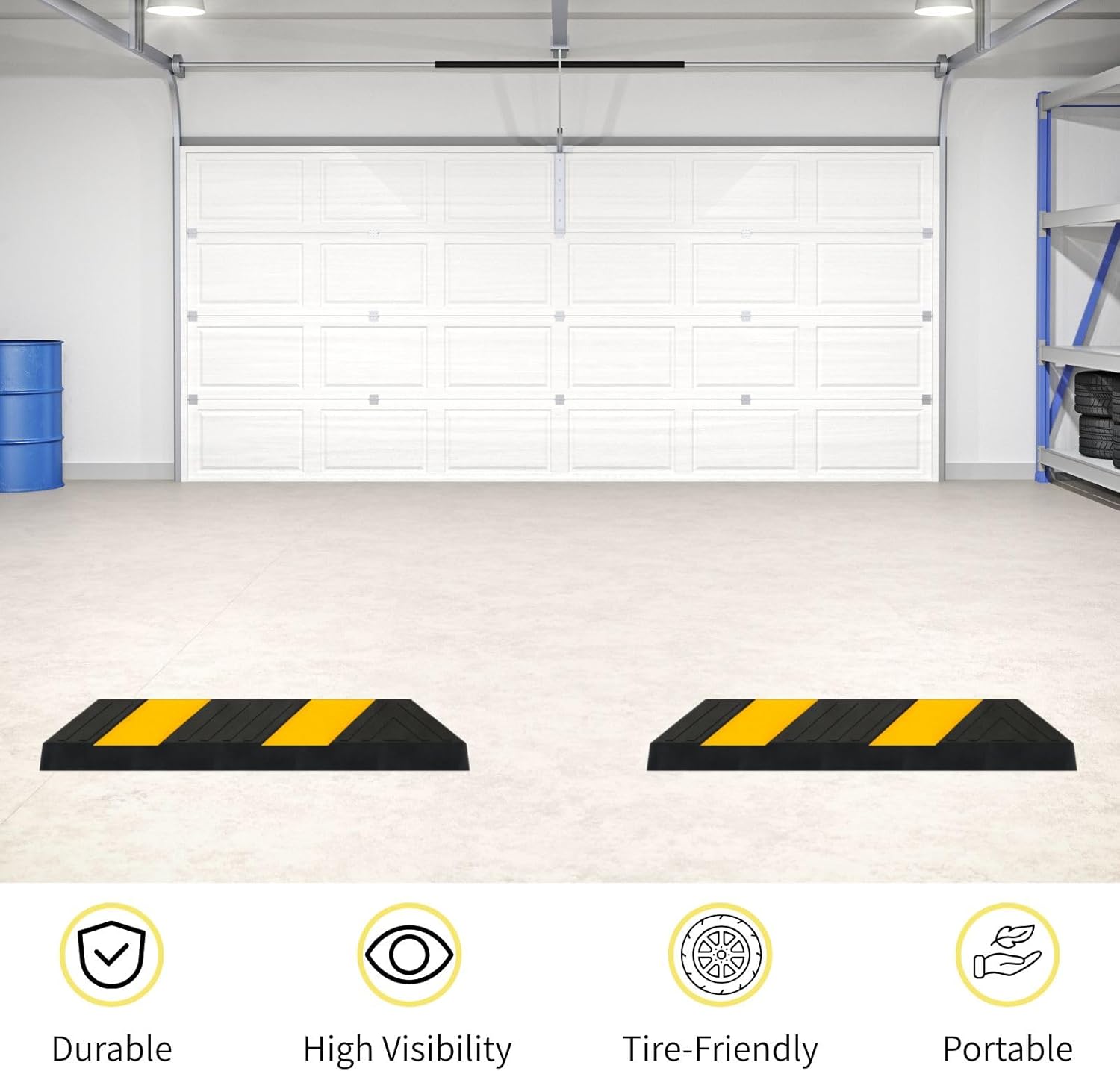 - Space-Saving Parking Solution : Organize garages, driveways, or commercial lots efficiently with a durable barrier that protects walls, landscaping, and other vehicles from unintended rolling or parking errors.