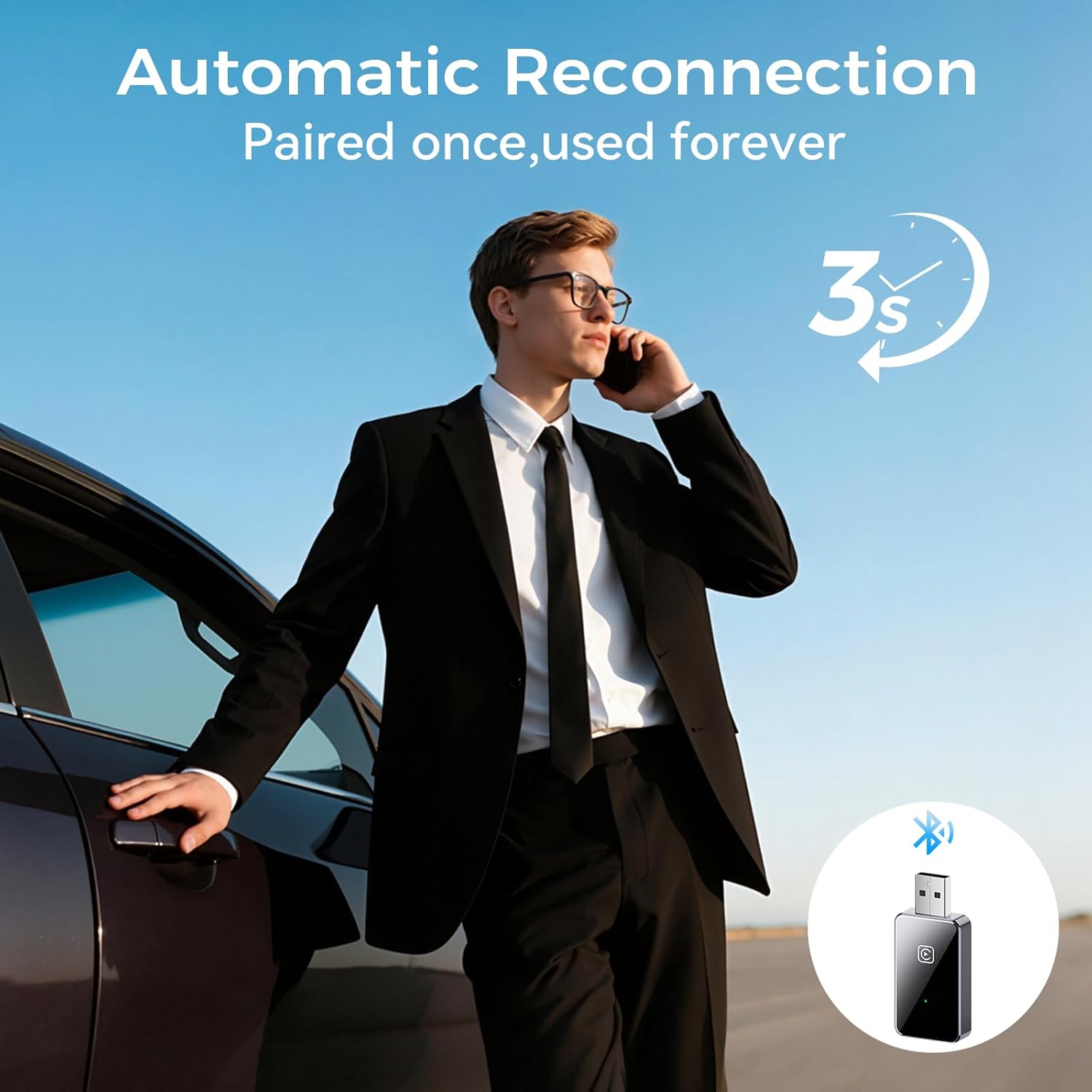 - 【Plug and Play】Simply connect your iOS phone or Android phone to a factory wired CarPlay or Android Auto equipped car (model years: 2016 to 2024), plug the wireless adapter into the USB port, and then connect to your phone via WiFi Bluetooth to work. There's no need to connect manually after that, the for apple carplay wireless adapter connects automatically as soon as the vehicle is started. Even if your phone is in your bag or pocket, it connects seamlessly for a smooth driving experience.