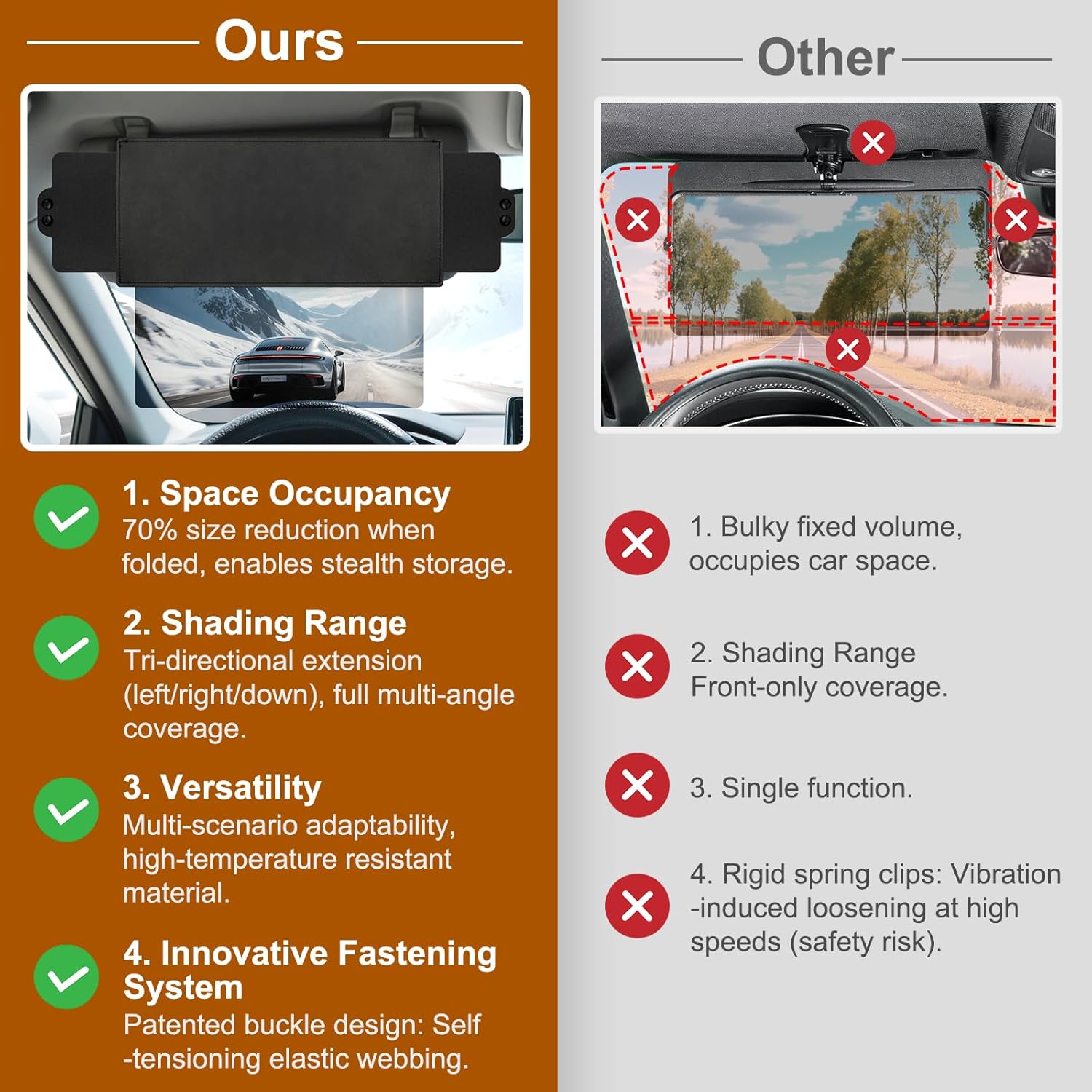 - 【5-Second Tool-Free Installation & Premium Support】 Upgraded slide-track mechanism + 40% longer reinforced straps of sun visor extension enable instant mounting. It's ideal as safety-focused gifts for your family and friends. Any questions will be responded within 24 hours.