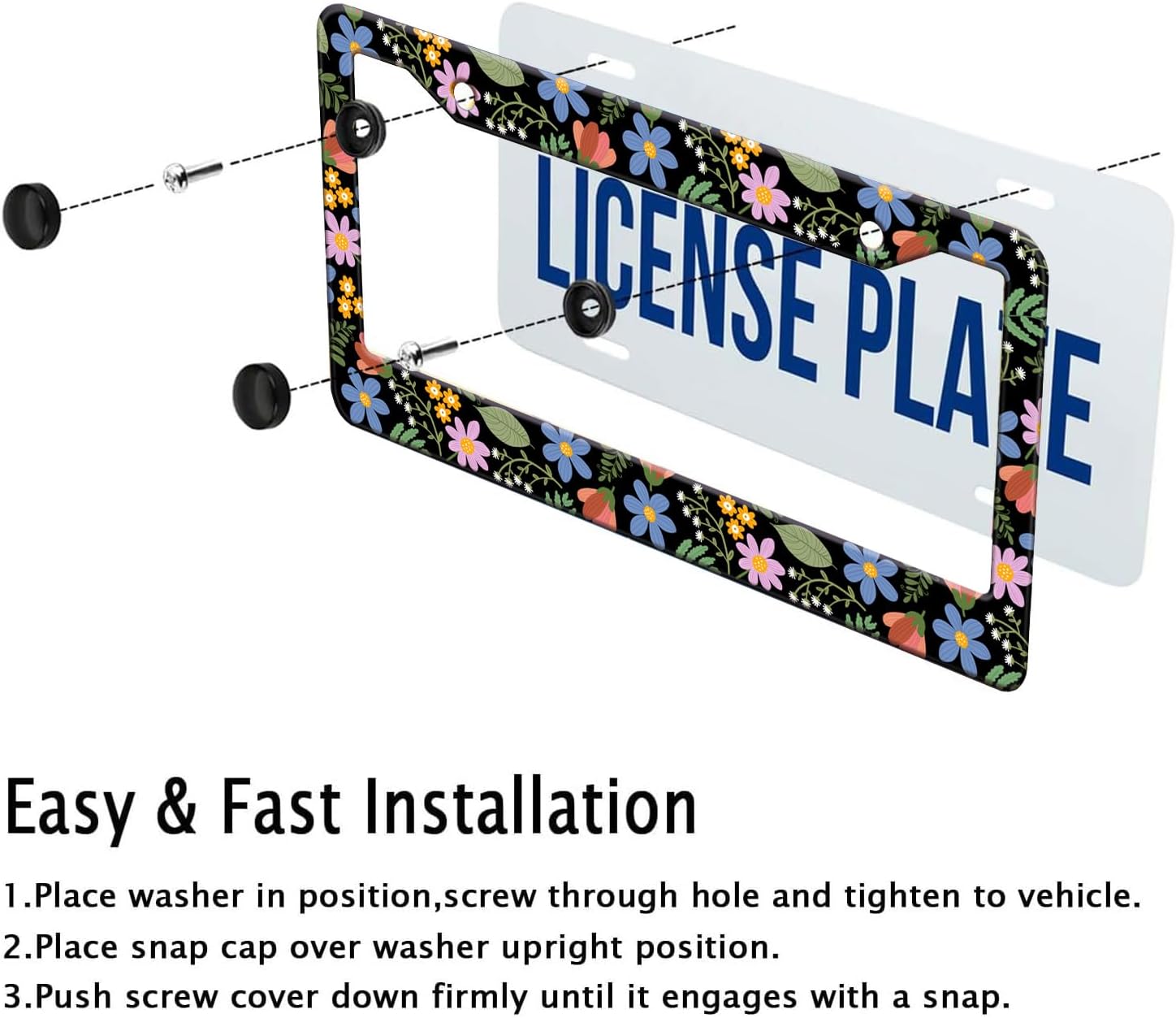 - 【Product Includes Accessories】: (2 Screws, 2 Screw Covers, 2 Washers ) With Slots On The Top, Use The Included Accessories To Install The License Plate Frame, Simple Operation, Fast Installation, No Special Tools Required.