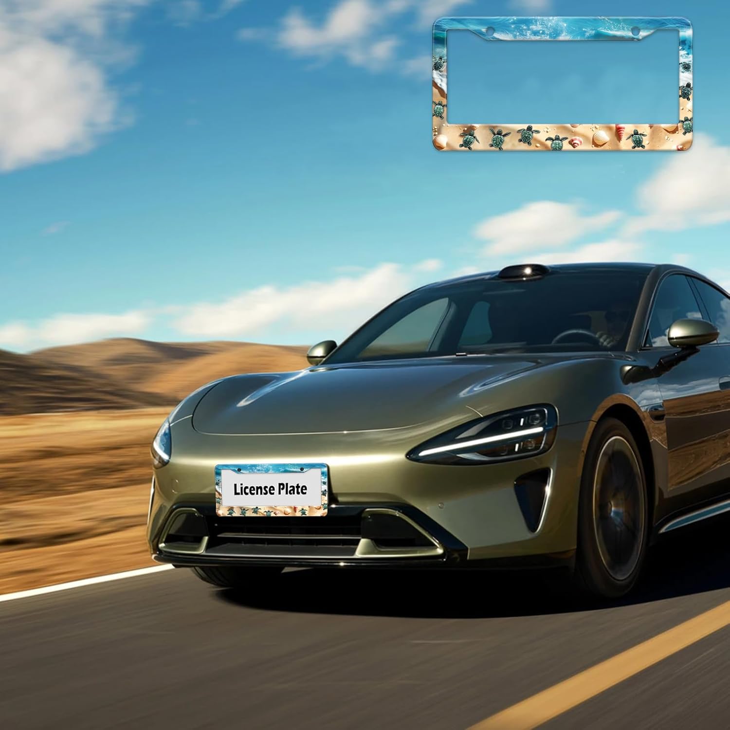 Cute Beach Turtles License Plate Frame, Sea Turtles Sea Shell Starfish Front License Plate Holder Cover, Metal Aluminum Rustproof Car Accessories for Women Men 2 Holes with Screw Caps