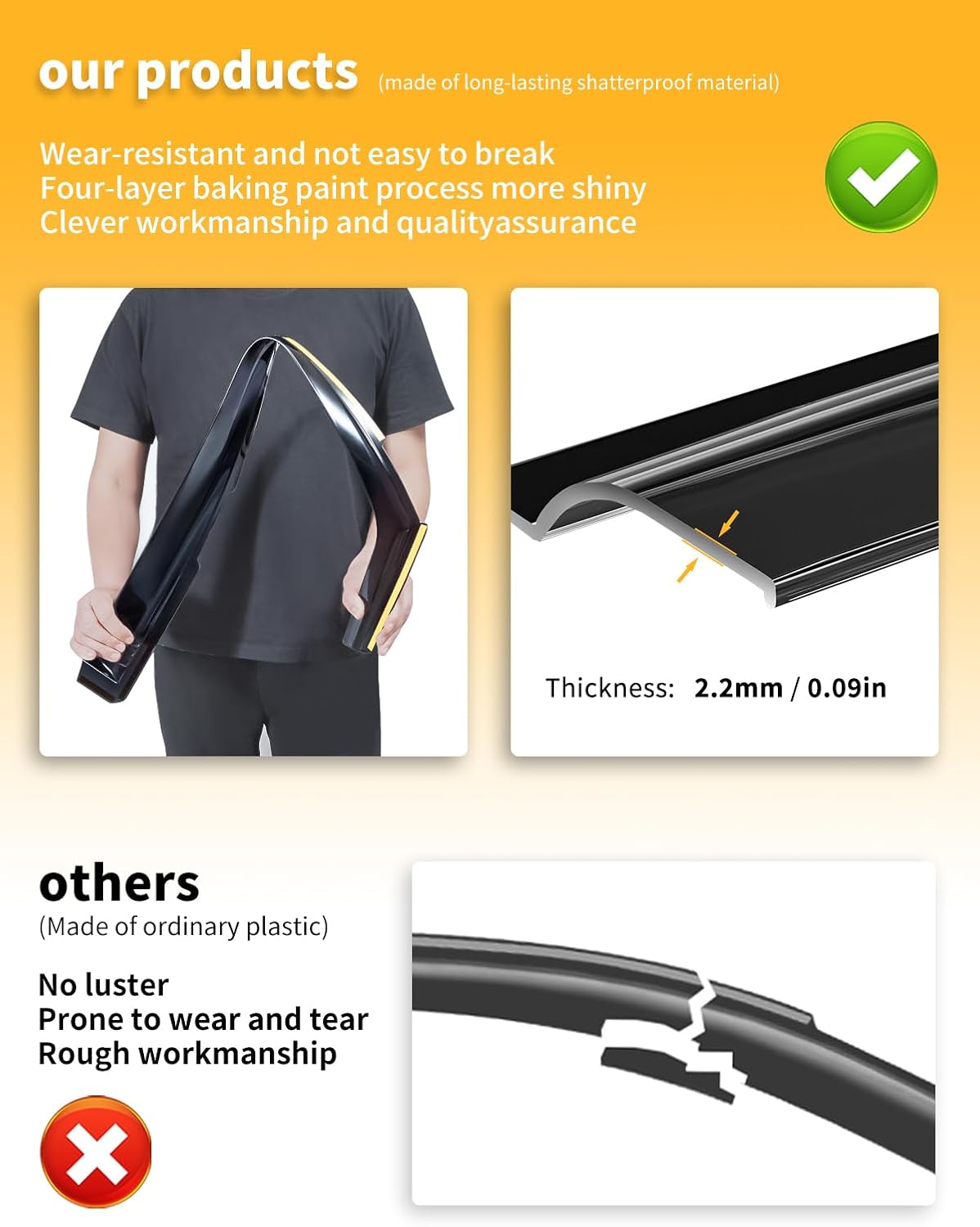 - 【For a Fresher Ride】 Keep rain and weather out while letting fresh air in to whisk away those stale, stubborn odors from pets, smoking, spills and more. The air inside your car will be more circulated, and your mood will be more pleasant.