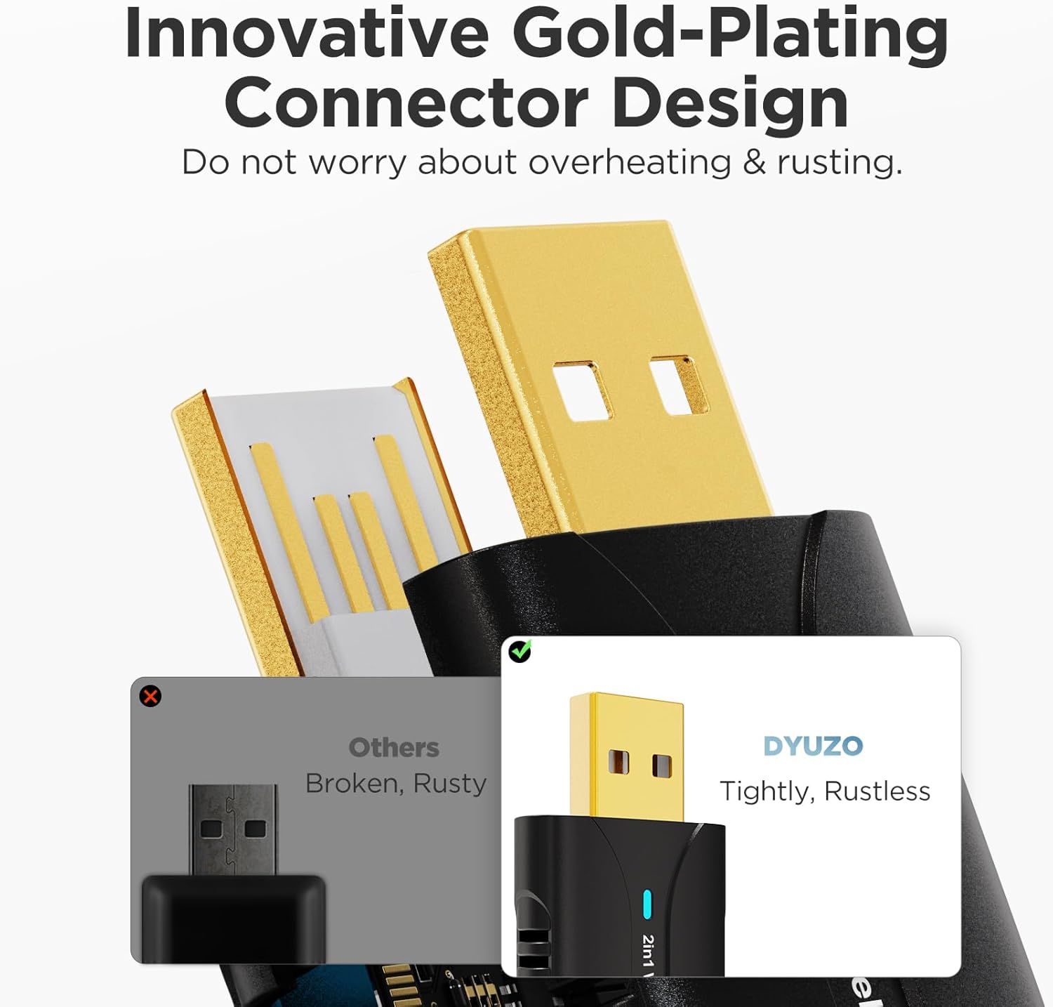 - Fast and stable connection: The USB port has been upgraded from traditional iron to copper. Copper has excellent electrical conductivity, which significantly increases transmission speeds while effectively reducing heat build-up and thus optimising cooling. In addition, copper's resistance to oxidation and corrosion enhances durability and extends the life of the adapter. Gold plating adds a sense of luxury and enhances the overall experience