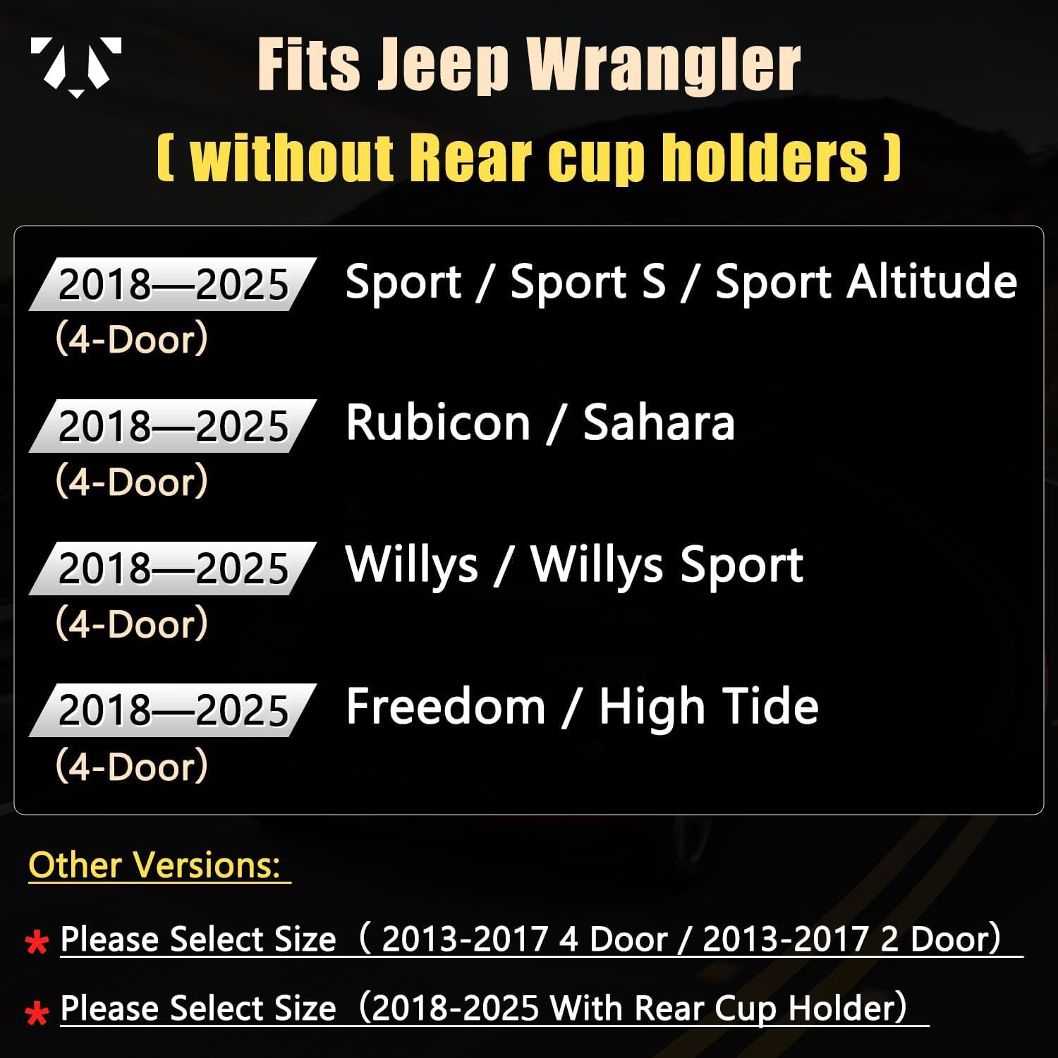GIANT PANDA Customized Rear Car Seat Covers for Jeep Wrangler 4 Door JL Sahara Sport Rubicon Unlimited Willys 2018 2019 2020 2021 2022 2023 2024 2025 Without Rear Cup Holder,Faux Leather,(Black)