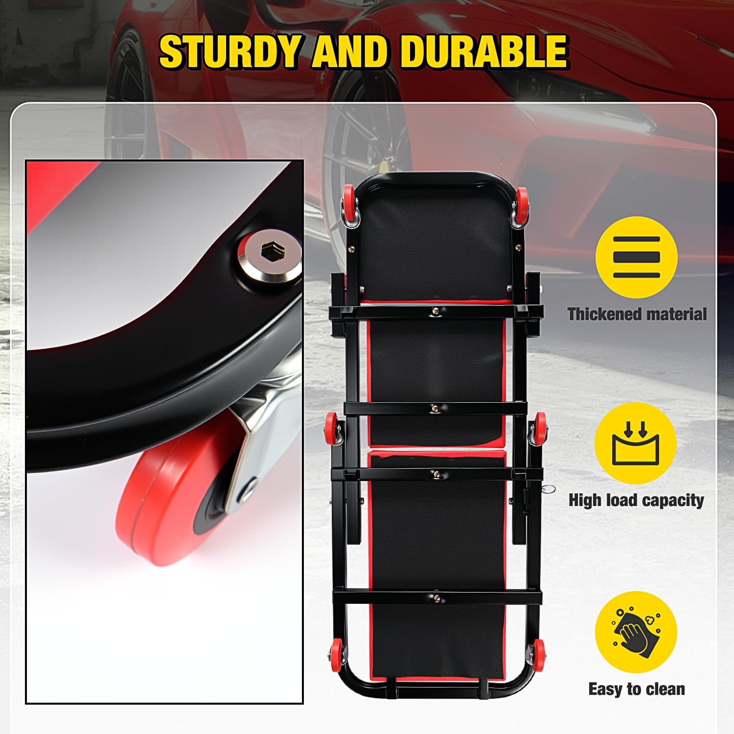 - Rugged Construction Our Garage Shop Creeper is designed with a heavy-duty steel frame for strength and durability. Standing the test of time, they provide long-lasting performance and reliability.
