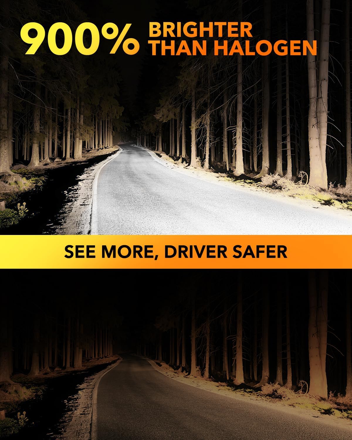 - 【9X Brighter Illumination】: Experience exceptional visibility with OXILAM H11 H8 H9 bulbs, featuring 16 upgraded high-power chips that deliver a staggering 900% increase in brightness. These high-performance bulbs allow you to see further on the road.