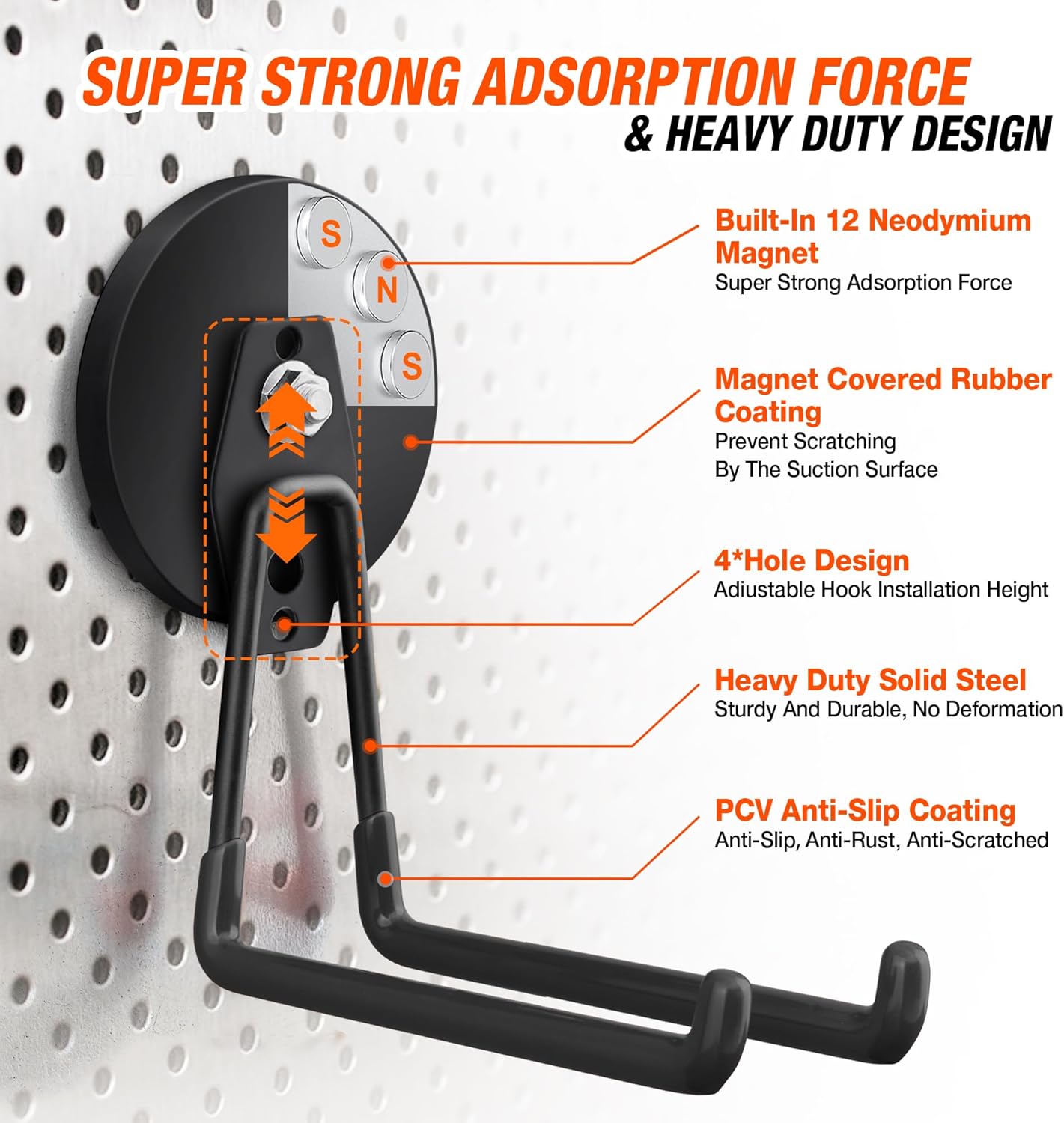 - 🧲[High Quality] The garage hooks with magnets are made of heavy duty steel metal material (we are increased the length of the hook), have strong load bearing capacity. Solid steel body adopts anti-rust coating and non-slip PVC sheath which gives better grab on hanging items and prevent them from falling or being scratched. The tubular double hooks design makes the heavy duty magnetic utility hooks more stable than regular single hooks.