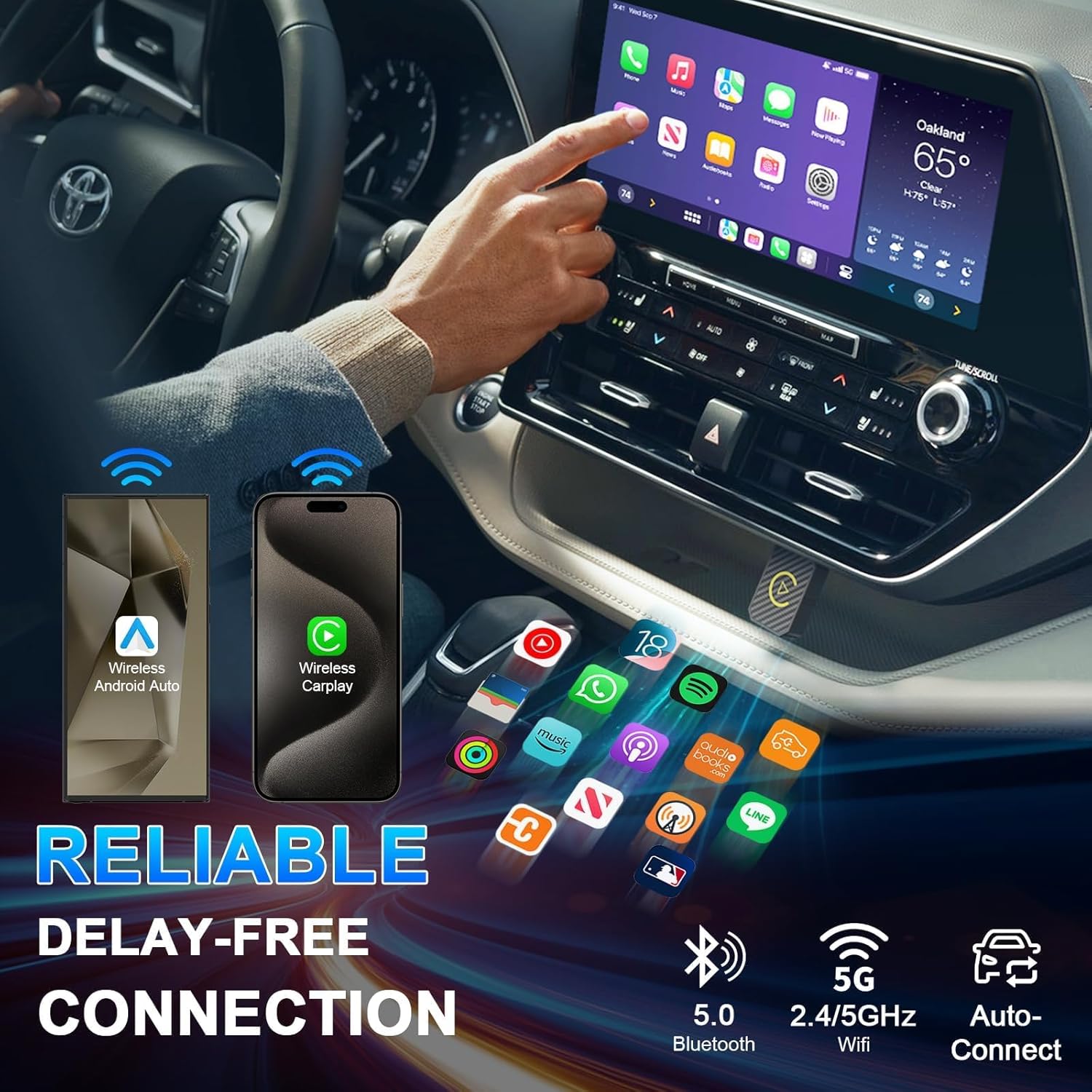 - ✨【Easy to Set up & Auto Reconnection】The Wireless Carplay and Android Auto Car Adapter is the perfect accessory to enhance the driving experience. Simple plug-and-play setup ensures seamless connectivity between your car and smartphone. After the initial setup, the wireless apple carplay automatically connects to your phone every time you start your car, making it easy to recognize your phone even if it's in your pocket or backpack.