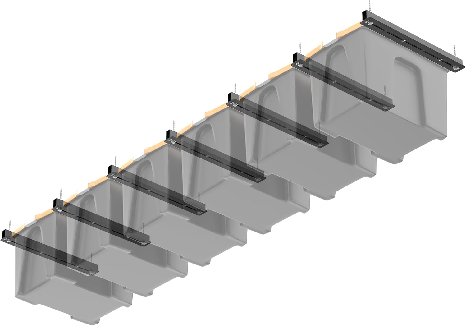- Expandable Storage Capacity: The ceiling storage rack adjusts to fit various bin sizes and features T-shaped bracket that can be expanded by connecting multiple sets, providing even more flexible storage space
