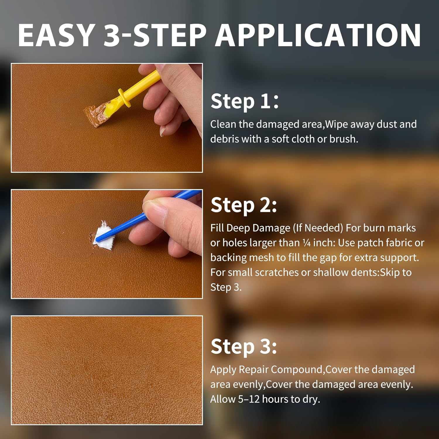 - Easy to Use:leather repair kit includes all necessary tools with a vividly illustrated manual.designed for effortless use, our step-by-step guide requires no professional experience - even first-time users can achieve professional results immediately.