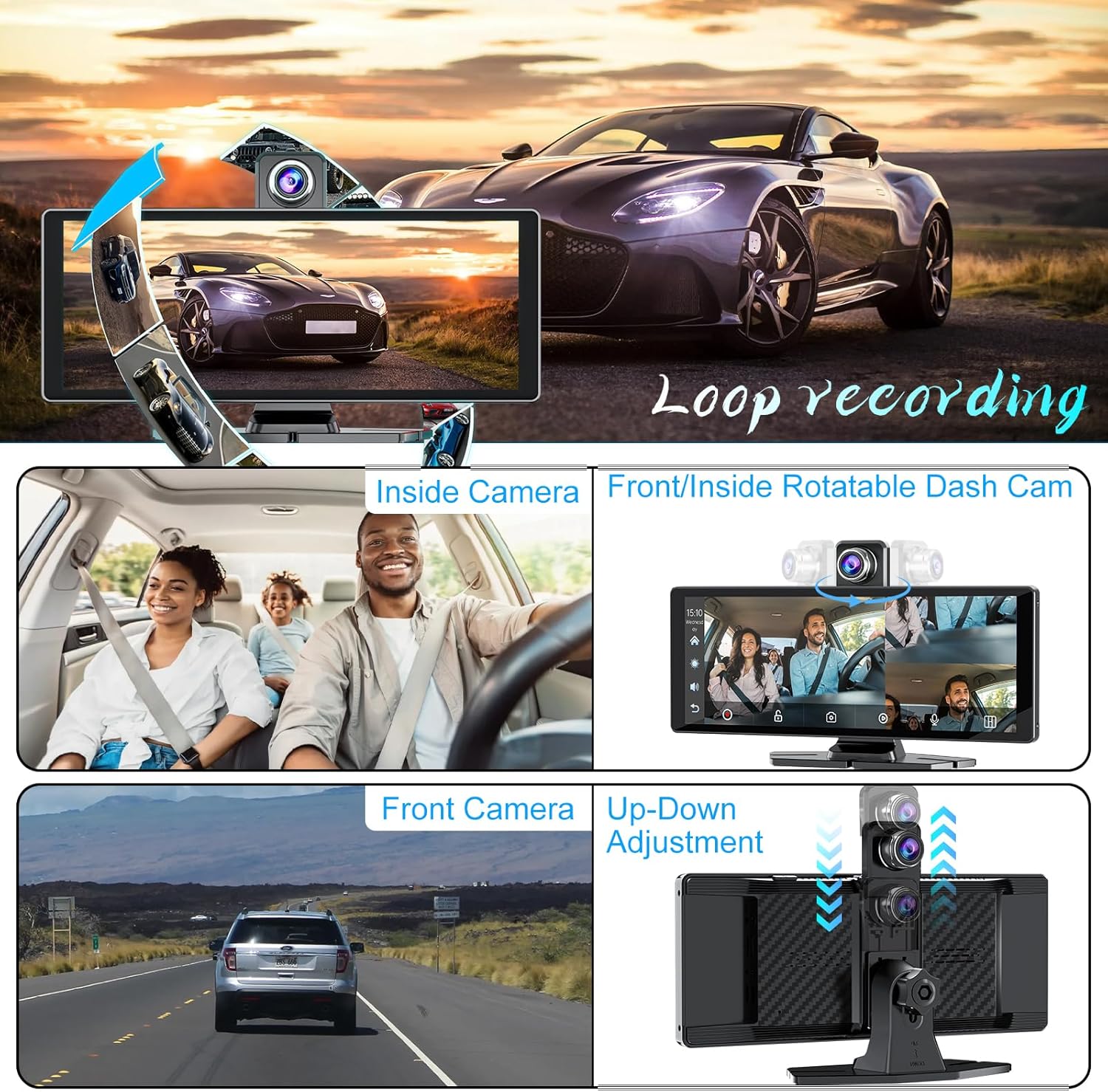 - 🔹【Front/Inside Rotatable 4K Dash Cam + HD Rear View Camera】 Unique Selling Point: Unlike standard dash cams, our rotatable 4K front camera swivels to record both the road AND cabin interior (taxi/rideshare-friendly). Paired with a 1080P rear camera, it supports dual-channel loop recording with 170° wide-angle lenses. Lock important footage (accidents, rideshare incidents) and replay videos via your phone.