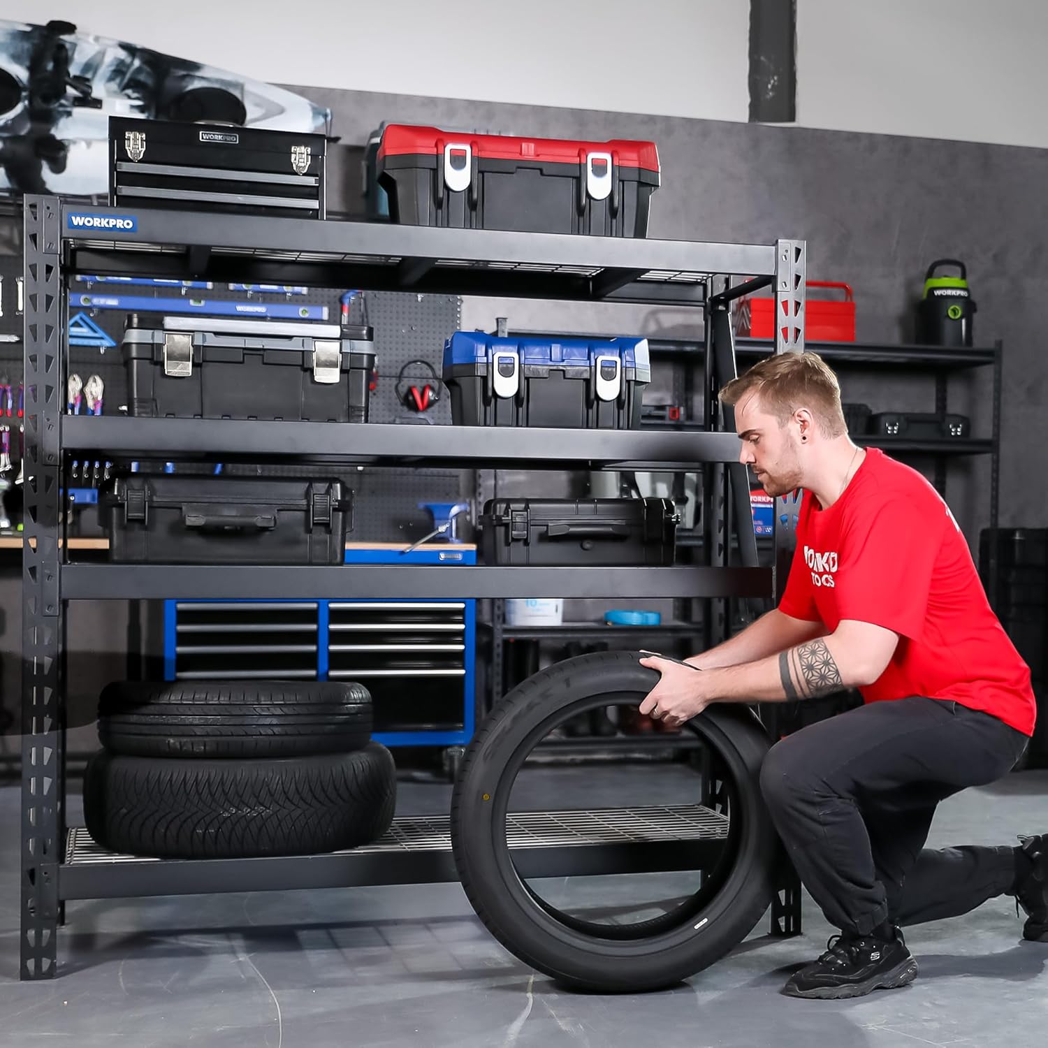 WORKPRO 77" Garage Shelving Unit, 8000LBS Heavy Duty Metal Storage Rack, Extra Wide Adjustable 4-Tier Shelves for Warehouse, Basement, and Garage, 77" W X 24" D X 72" H, Black