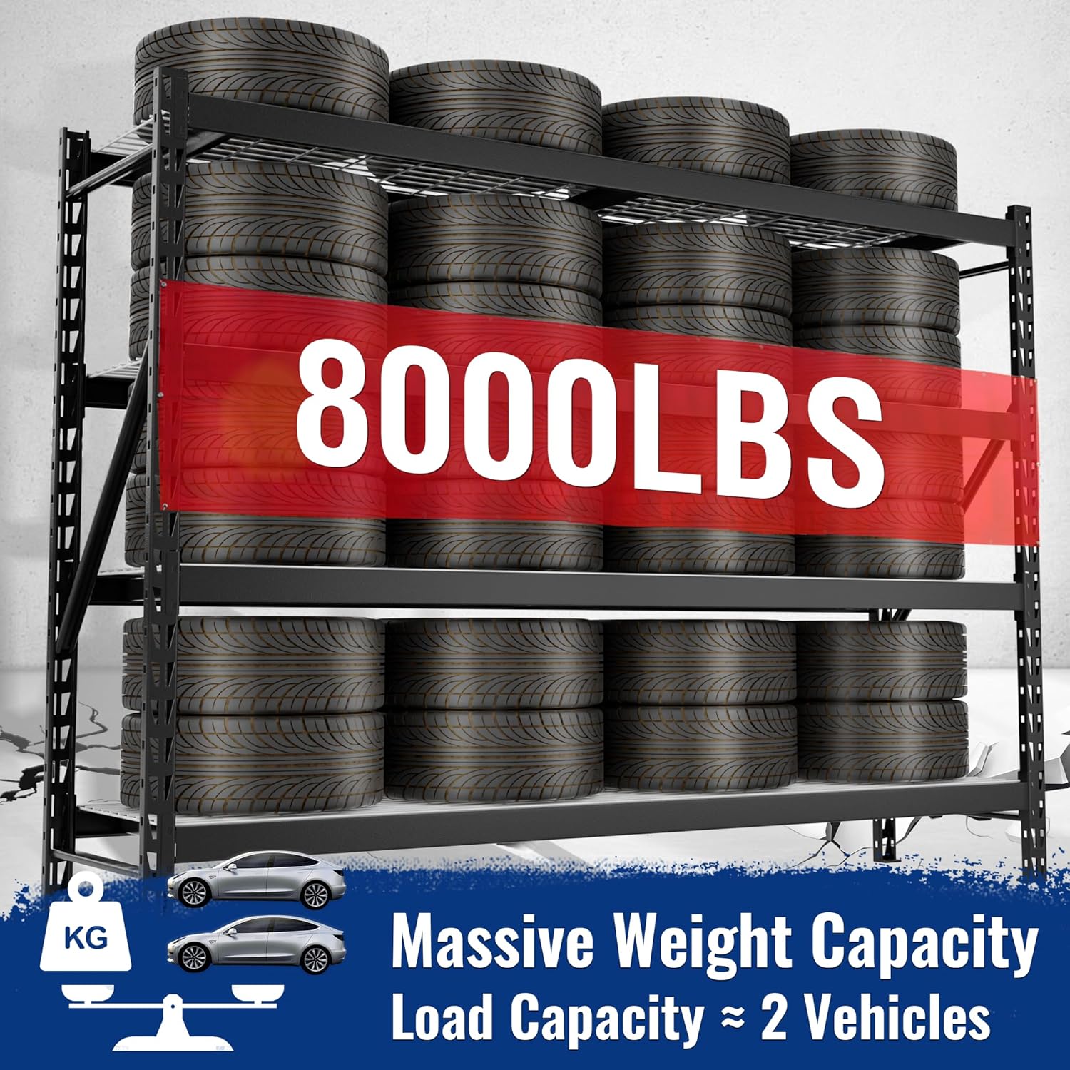 - 8000LBS Heavy-Duty Capacity – Each shelf holds up to 2,000 lbs, total 8,000 lbs. Welded steel and reinforced beams make it perfect for heavy tools, equipment, and storage items.