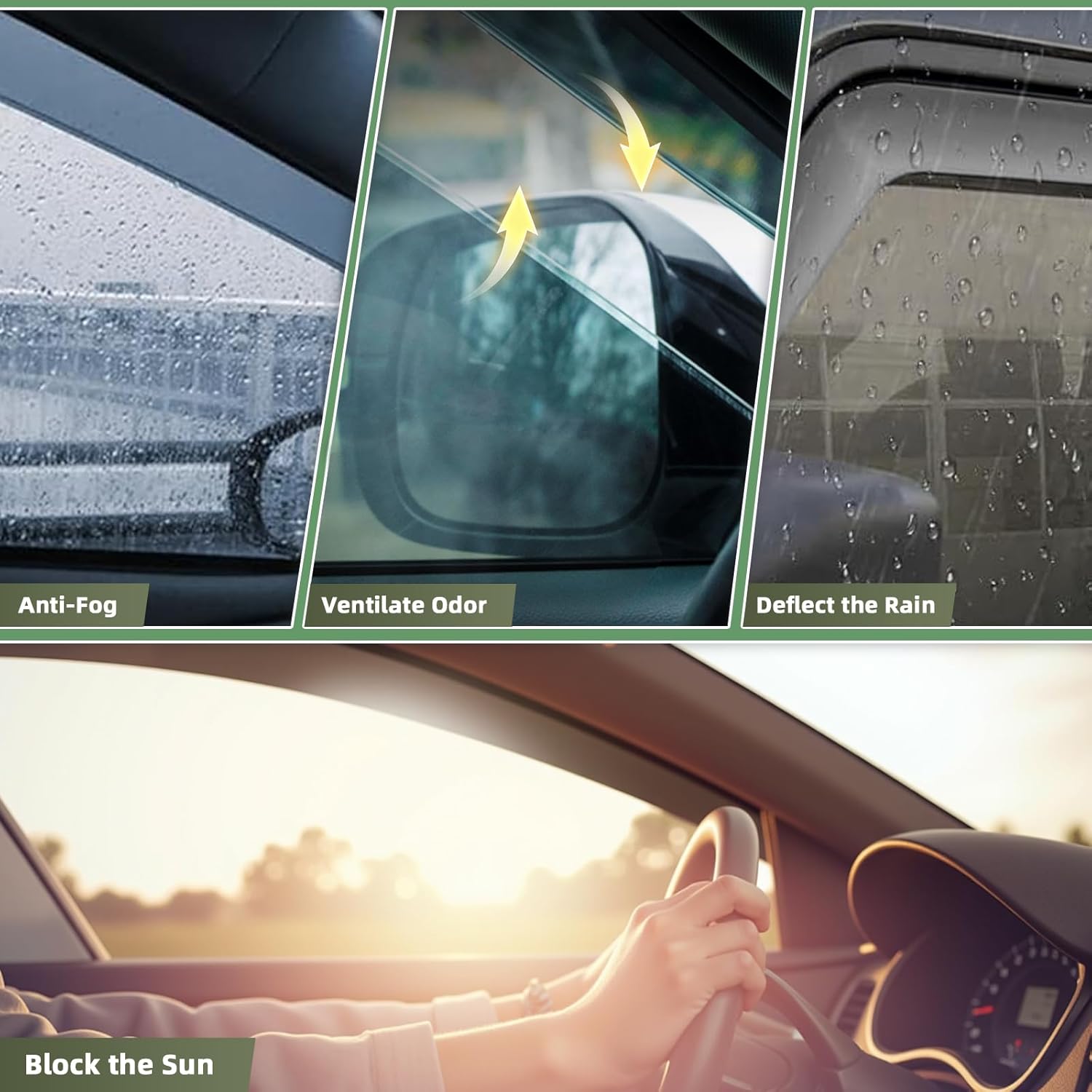 - 【Improved Ventilation and Air Flow】Allows fresh air to circulate through open windows while keeping the rain out or reduces heat. Reduce mirror and window fogging; reduce sun glare through side window. Dark Smoke translucent color will not obstruct the driver's view while driving