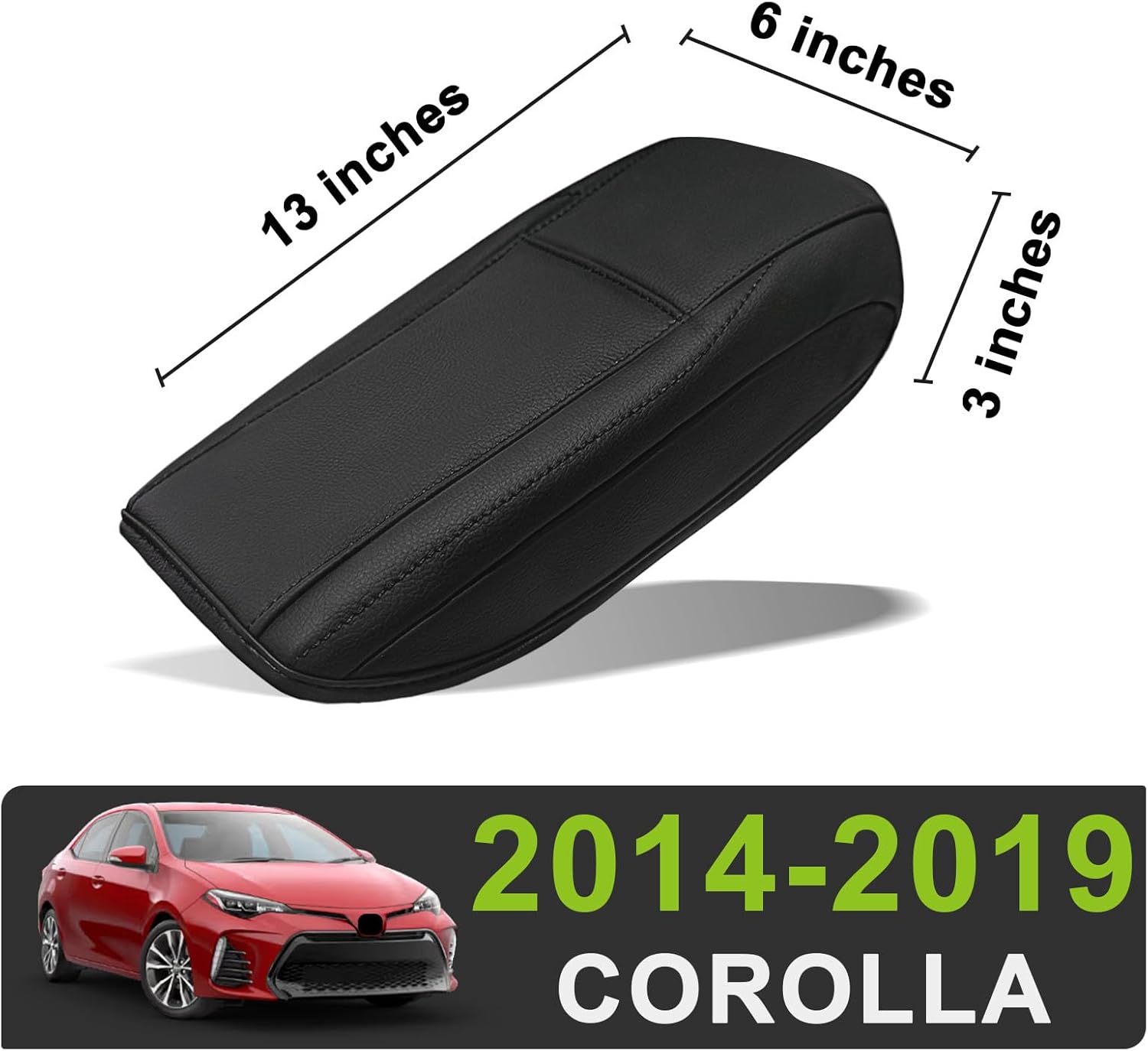Muslogy Center Console Armrest Cover Compatible with Toyota Corolla 2014-2019 Comfort Armrest Pad Arm Rest Cushion Vegan Leather Protector Regular Thick