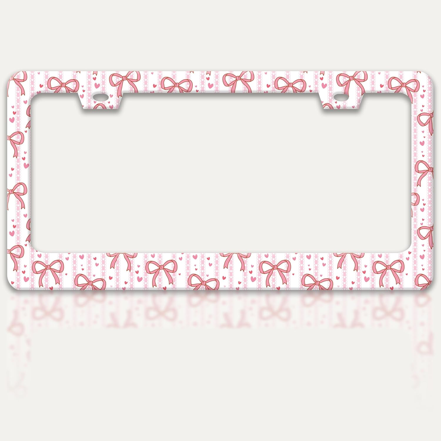 Pink Bow License Plate Frame Cute Bow License Plate Holders Funny Stainless Steel Auto Accessory Bracket 2 Hole with Screws Universal Us Car License Plate Frames 6x12 Inch for Women Men