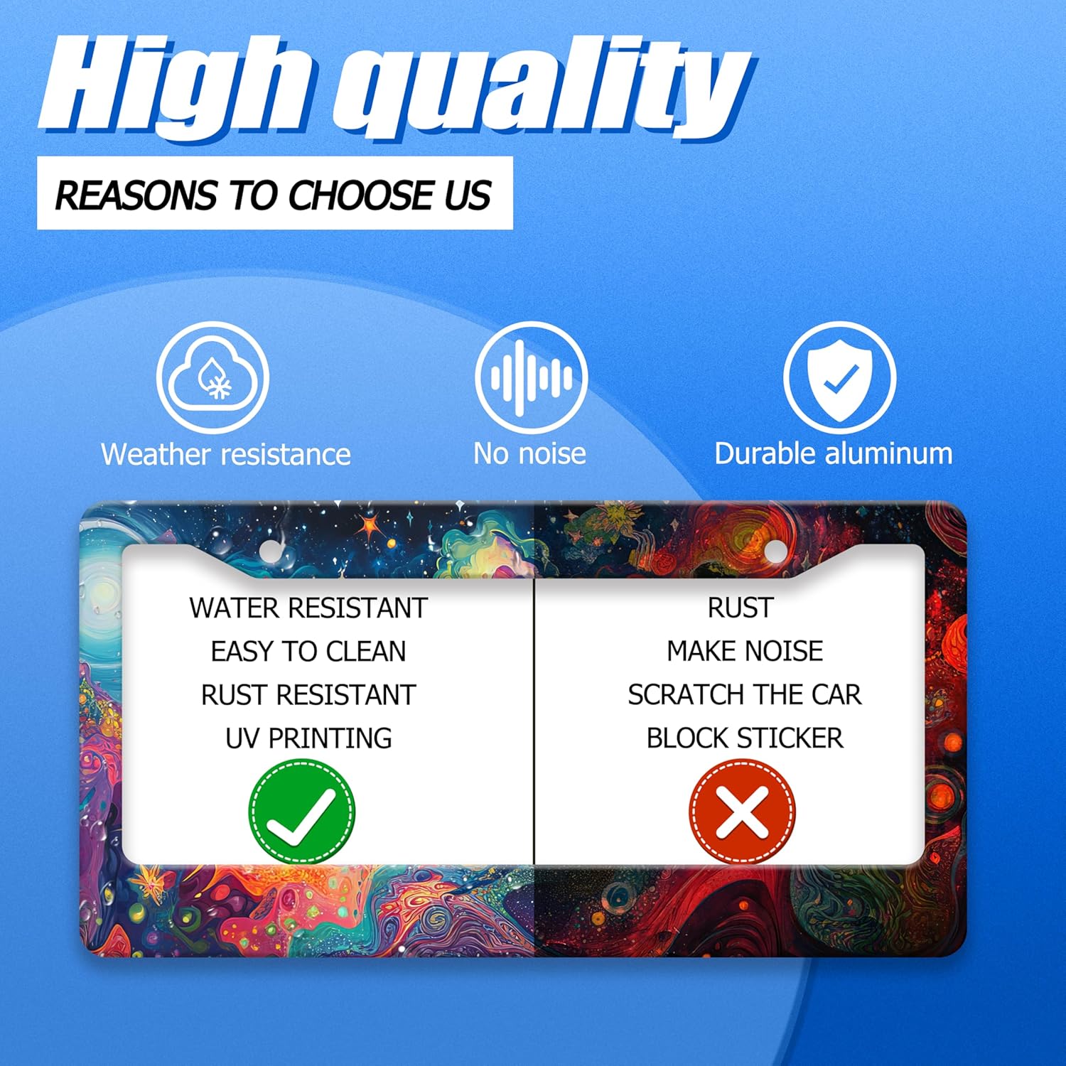 Abstract Galaxy License Plate Frame Starry Sky License Plate Stainless Steel Funny License Plate Holder for Men Women Colorful Car Accessories Decoration 12.3" x 6.3"