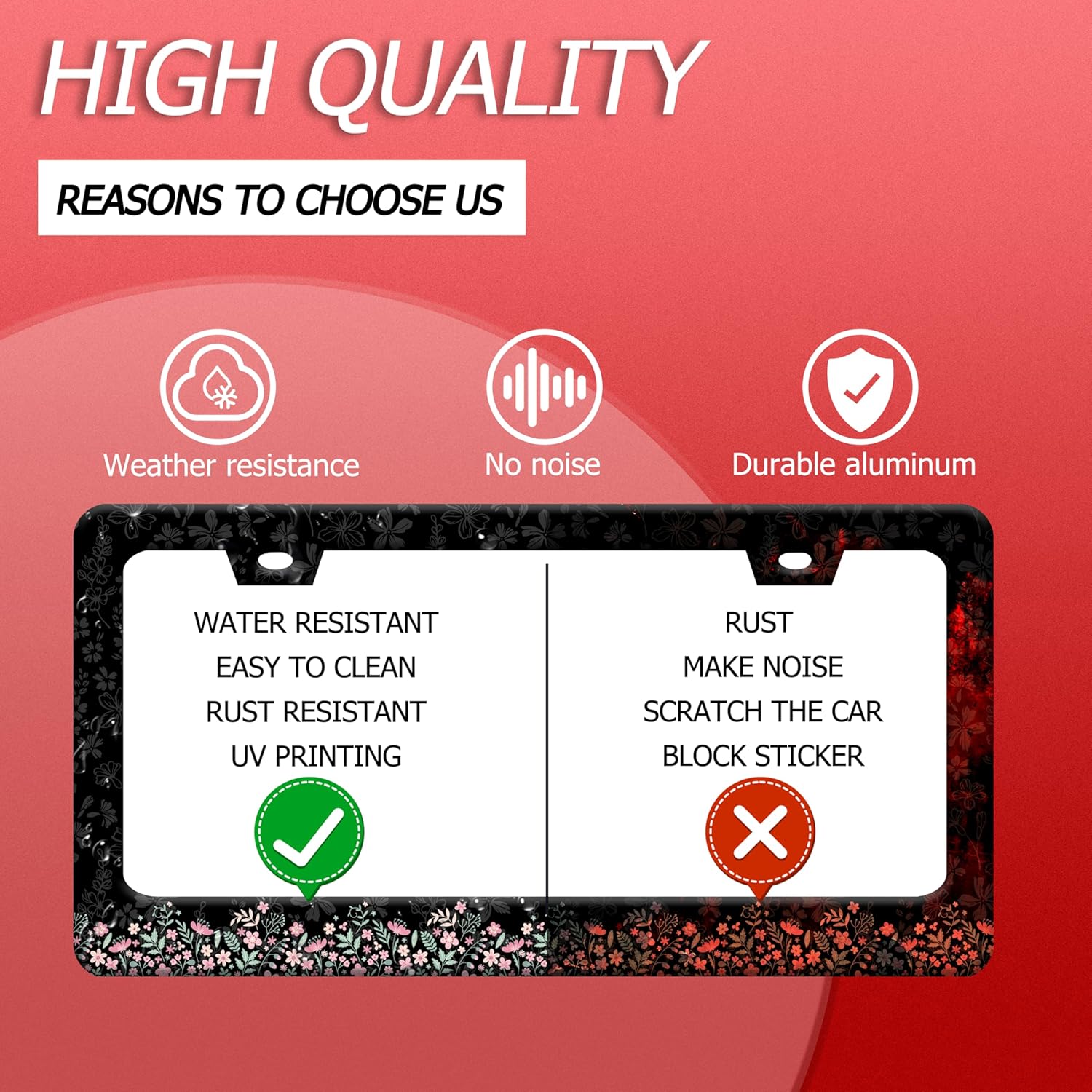 - Size: suitable for US and Canada standard size 12.3" x 6.3" license plate, Personalized Car Frame is Made to Fits all types of cars in the US and Canada,fashion pattern on the license plate,creating a stunning appearance and lasting quality