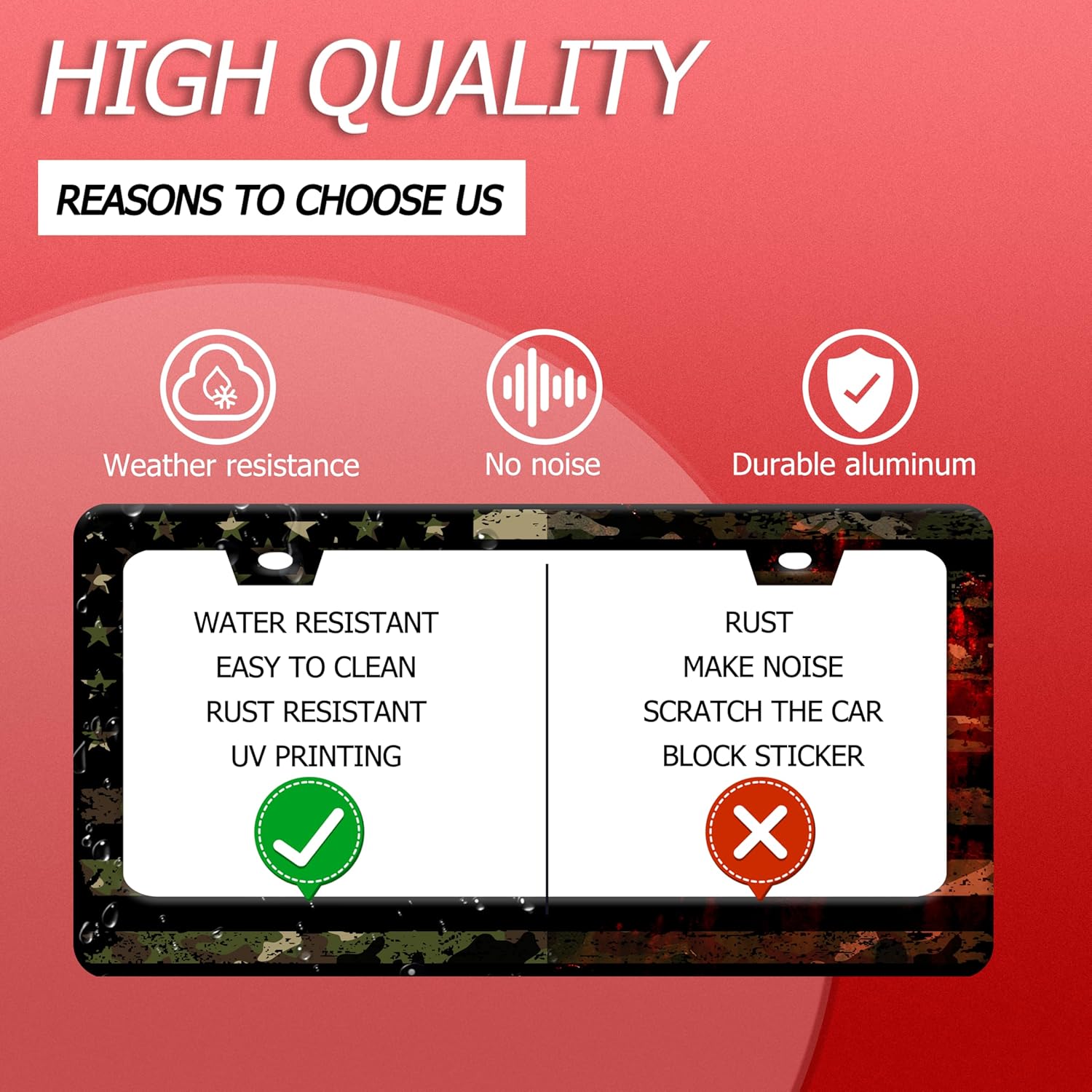 American Flag License Plate Frame Camo License Plate Frames Funny Auto Accessories Bracket Stainless Steel License Plate with Screws 6.3 x12.3 Inch