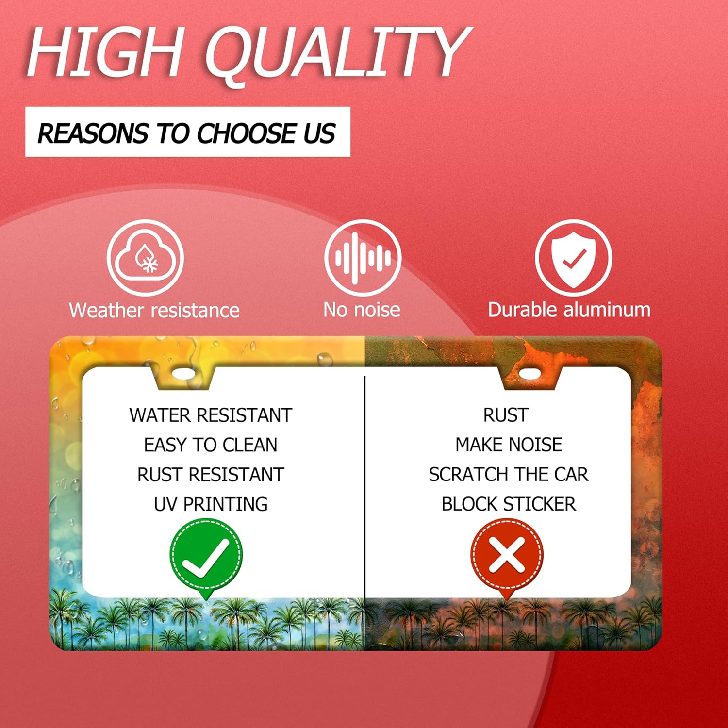 Palm Tree License Plate Frame Tropical Hawaii License Plate Frames Funny Auto Accessories Bracket Stainless Steel License Plate Holder 6x12 Inch