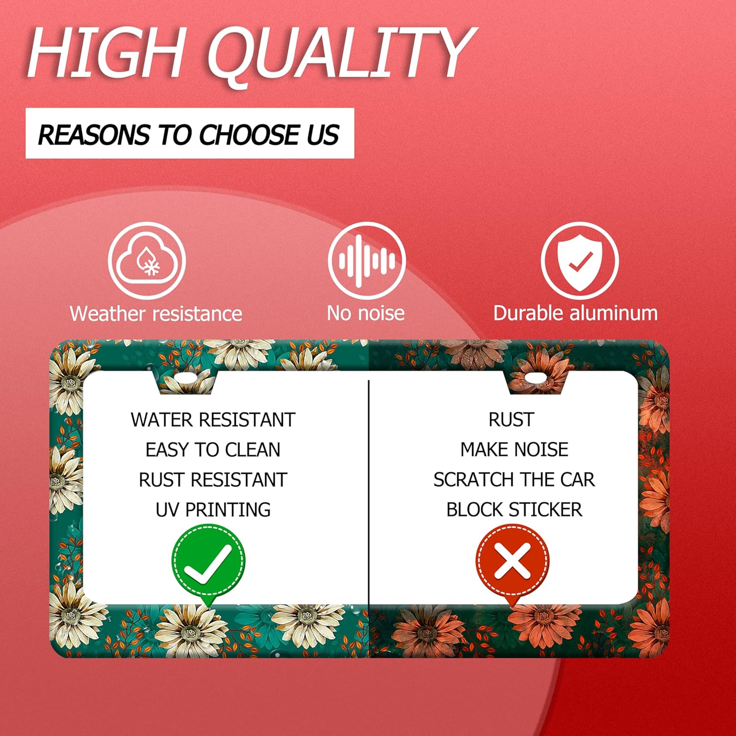 Vintage Daisy Floral License Plate Frame Colorful Flowers License Plate Frames Funny Auto Accessories Stainless Steel License Plate Holder 6x12 Inch