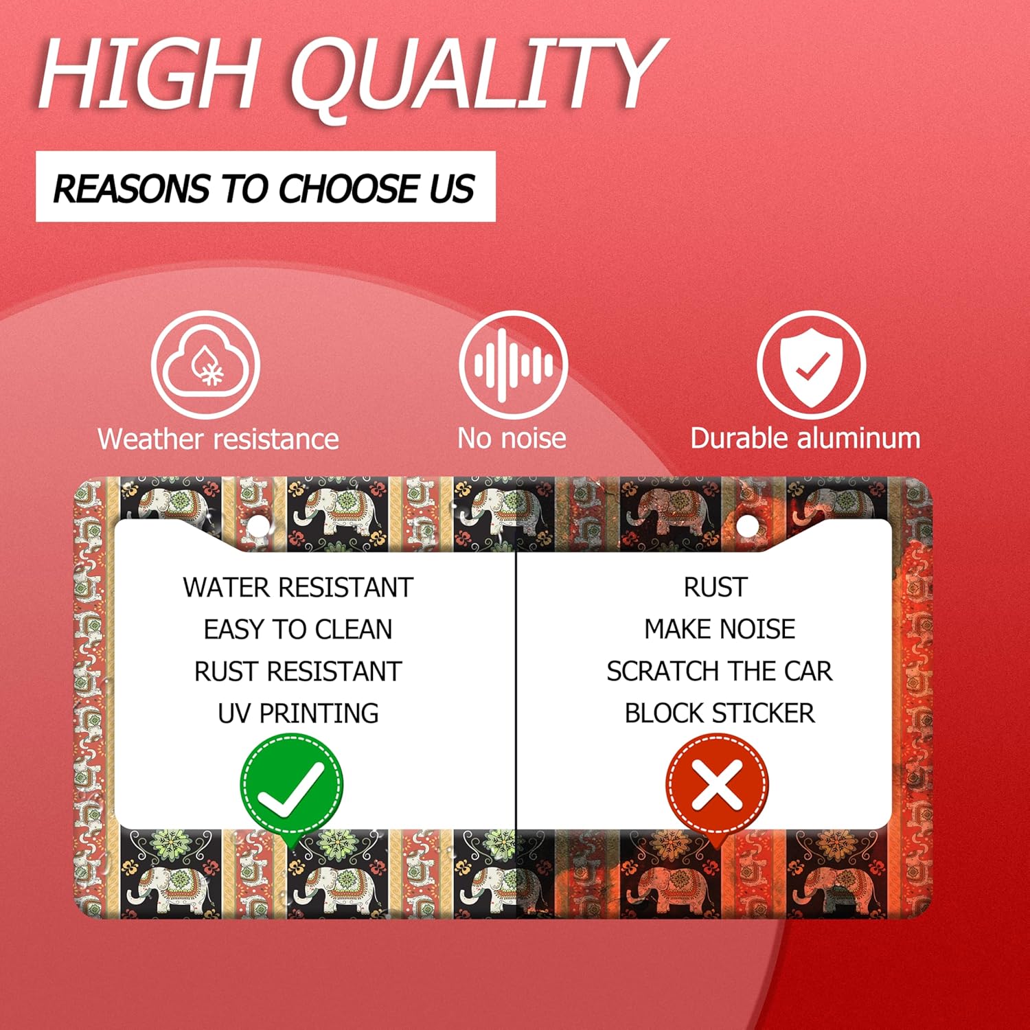 Tribal Elephant License Plate Frame Boho Animal License Plate Frames Funny Auto Accessories Bracket Stainless Steel License Plate Holder 6x12 Inch