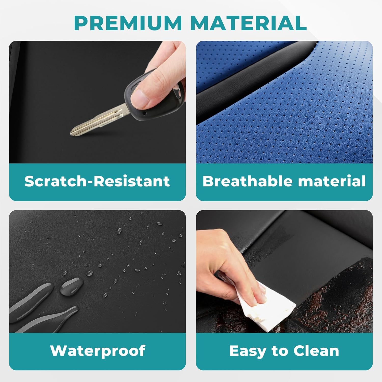 Car Seat Covers Full Set - Universal Seat Covers for Cars SUV Truck – Faux Leather Automotive Seat Covers, Breathable & Waterproof Front and Rear Seat Protectors, Fit for Most Cars-BlackBlue