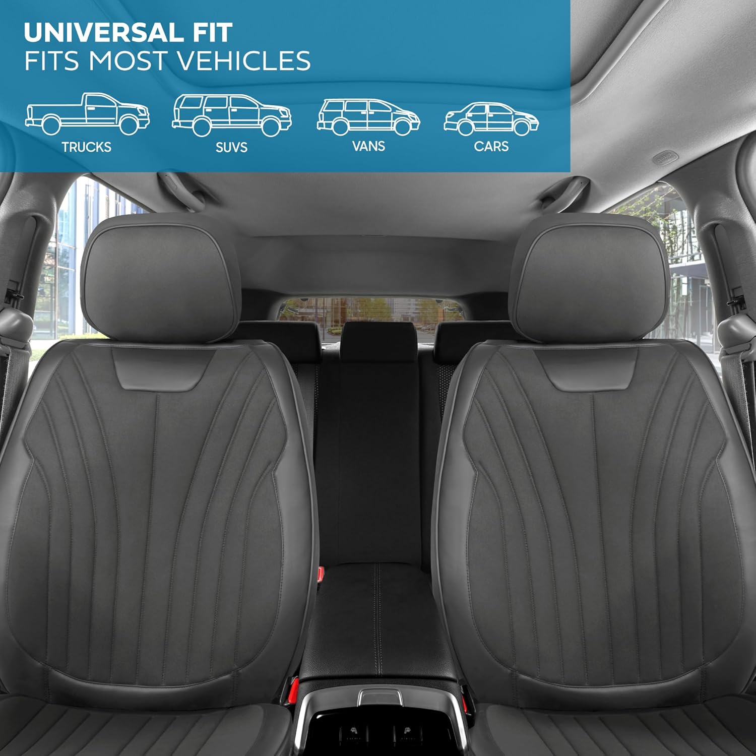 - ULTIMATE PROTECTION: MotorBox faux leather car seat covers offer ultimate protection against spills, stains, dirt, and wear. Designed to shield your seats from daily damage, these covers help maintain the original condition of your car’s interior, ensuring durability and extending the lifespan of your vehicle’s seats. Not just for cars, these are leather seat covers for trucks & SUVs too!