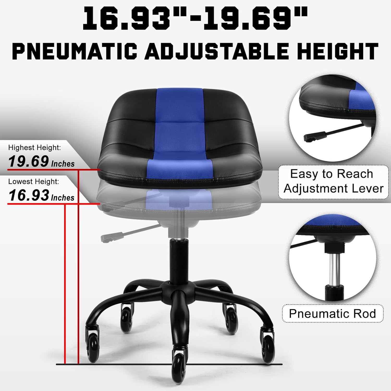 - 【Height Adjustable】Shop Stool-Adjust the height (from 16.93 "to 19.69") with the adjustable pneumatic lift. This garage stool puts you at the right height for the auto work. For example, car polishing, car detail cleaning, tire inspection, etc