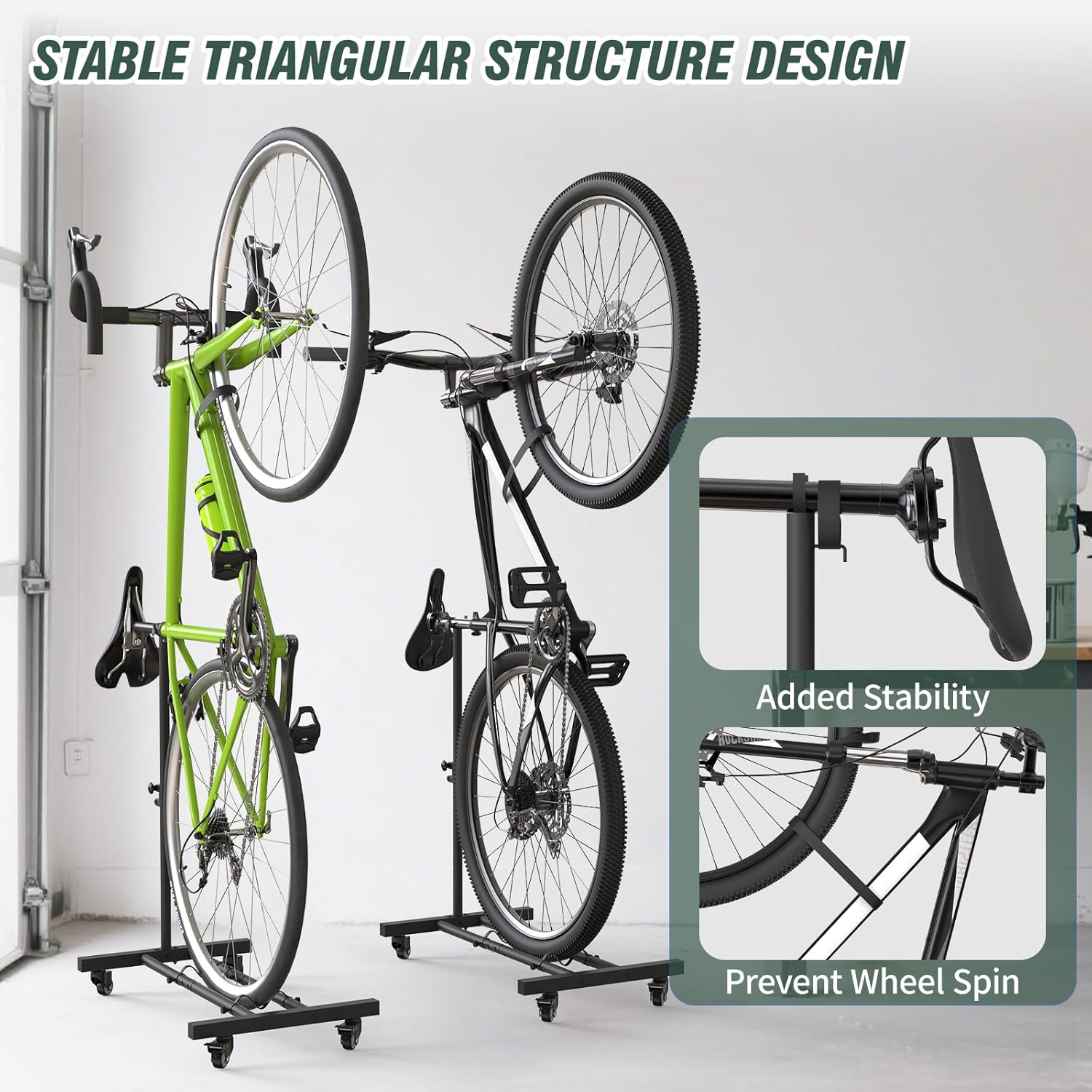 - EASY ACCESSIBILITY: Vertical bike holder is easy to assemble and requires no installation. It serves as both a vertical storage solution and a horizontal stand, allowing you to store bikes according to your needs. Its rotating design provides easy access from multiple angles, eliminating the hassle of lifting or maneuvering in tight spaces for added convenience.