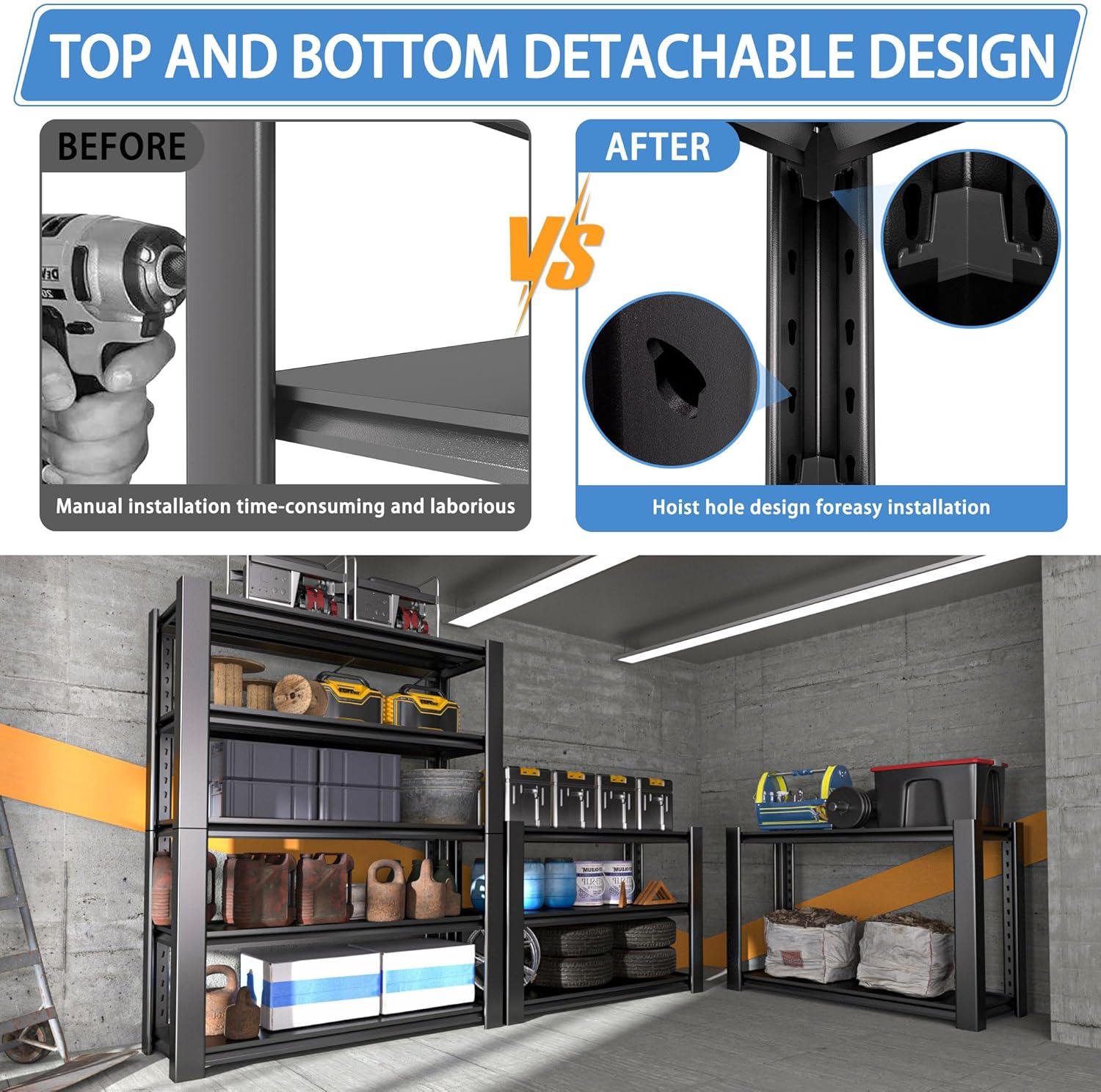 - Versatile for Any Space & User: This metal shelving unit declutters and organizes any area where you need storage. It's ideal for the garage, workshop, basement, pantry, utility room, or warehouse – holding tools, supplies, and household items with ease. Perfect for DIYers, mechanics, homeowners, renters, and handymen seeking a dependable storage solution.