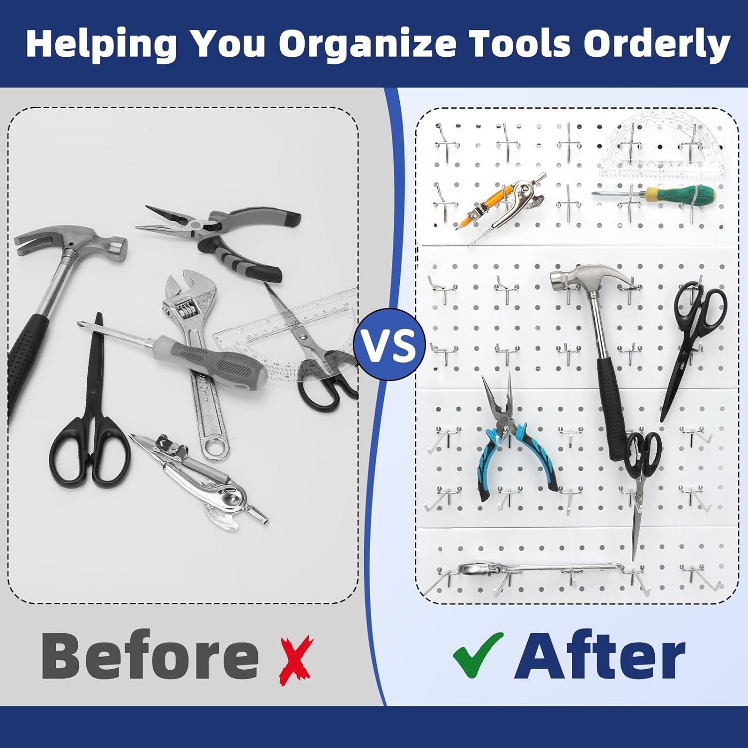 - Easy To Use: These hanging pegboard hooks easily insert into small holes without wobbling and can be removed without extra tools. Our pegboard hooks for hanging tools make your space look neat and professional