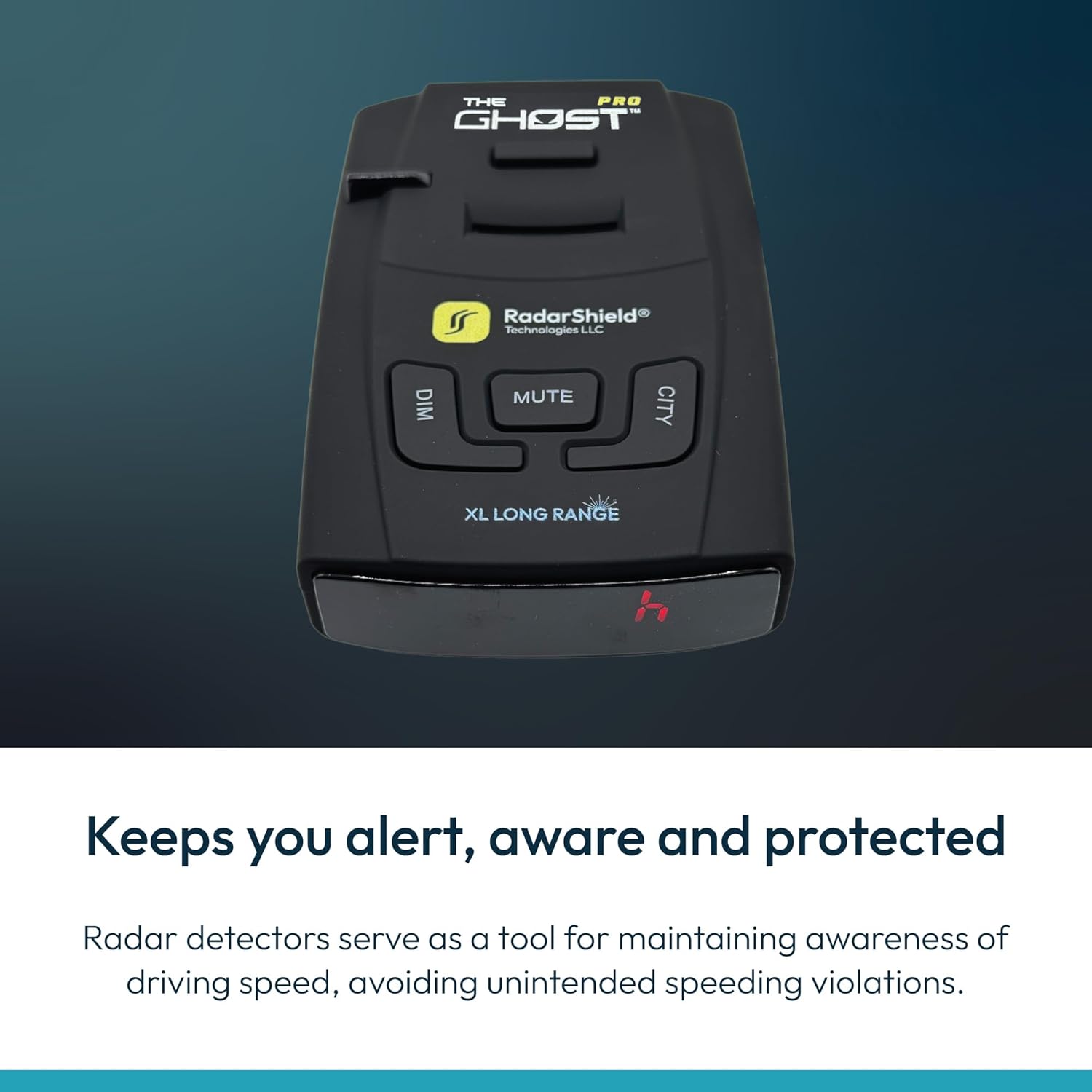 RadarShield Advanced Radar Detector for Cars, Ghost Pro Radar & Laser Detector with Long Range Detection, IVT Filtering, Laser Detection, Mute & Dim Buttons, Includes Mount & 12V Adapter, Black