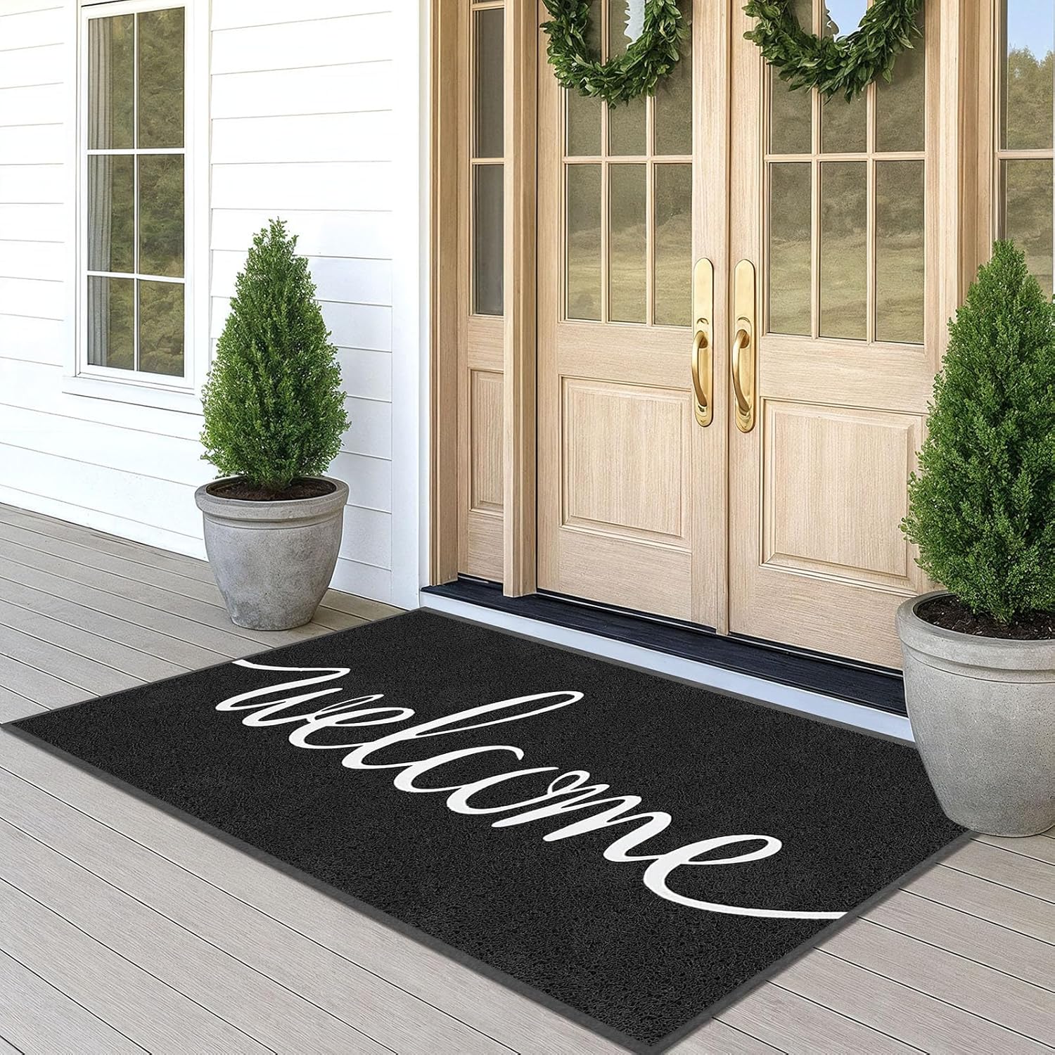 - MULTIFUNCTION USE: The "welcome" doormat is perfect for front doors, entryways, patios, garages, laundry rooms, balconies, kitchens, or any high-traffic area. Size: 71" x 47" inch (5'11" x 3'11" feet) for decorating, greeting guests, and as a great gift