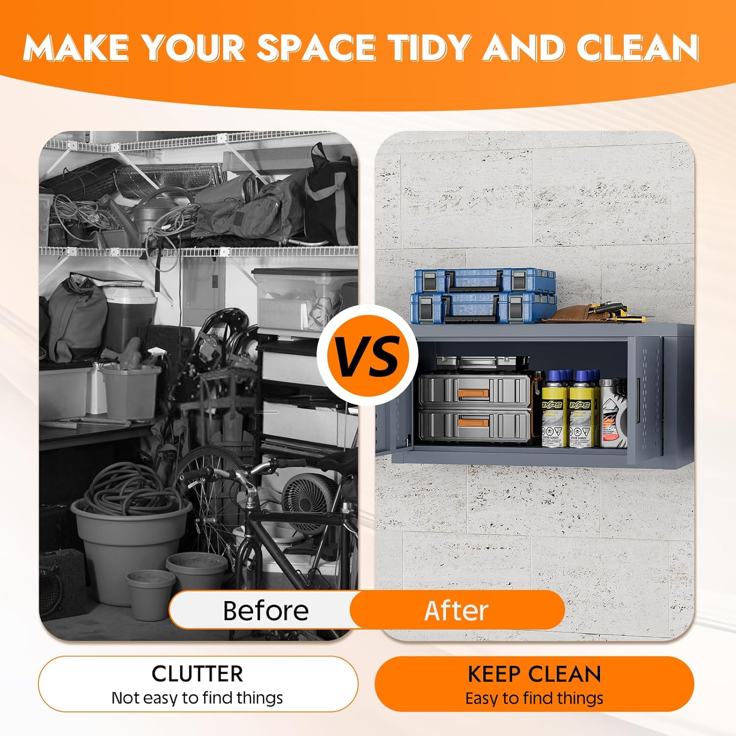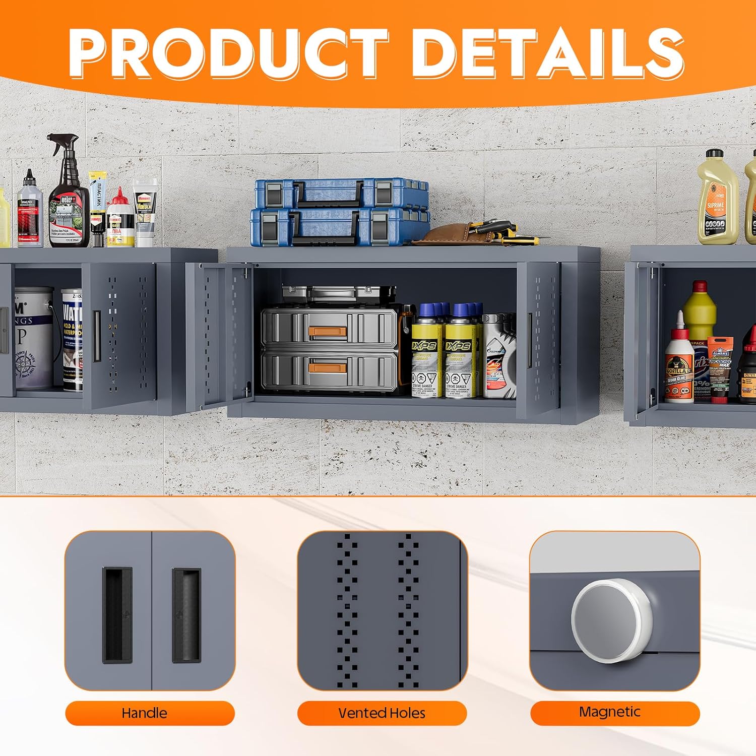 - 【WALL MOUNTED CABINET】Our garage storage cabinet help you save floor space, maximizing storage even in tight areas. They also add a decorative touch and offer flexible use. Perfect for organizing your items in the kitchen, garage, pantry, or laundry room.