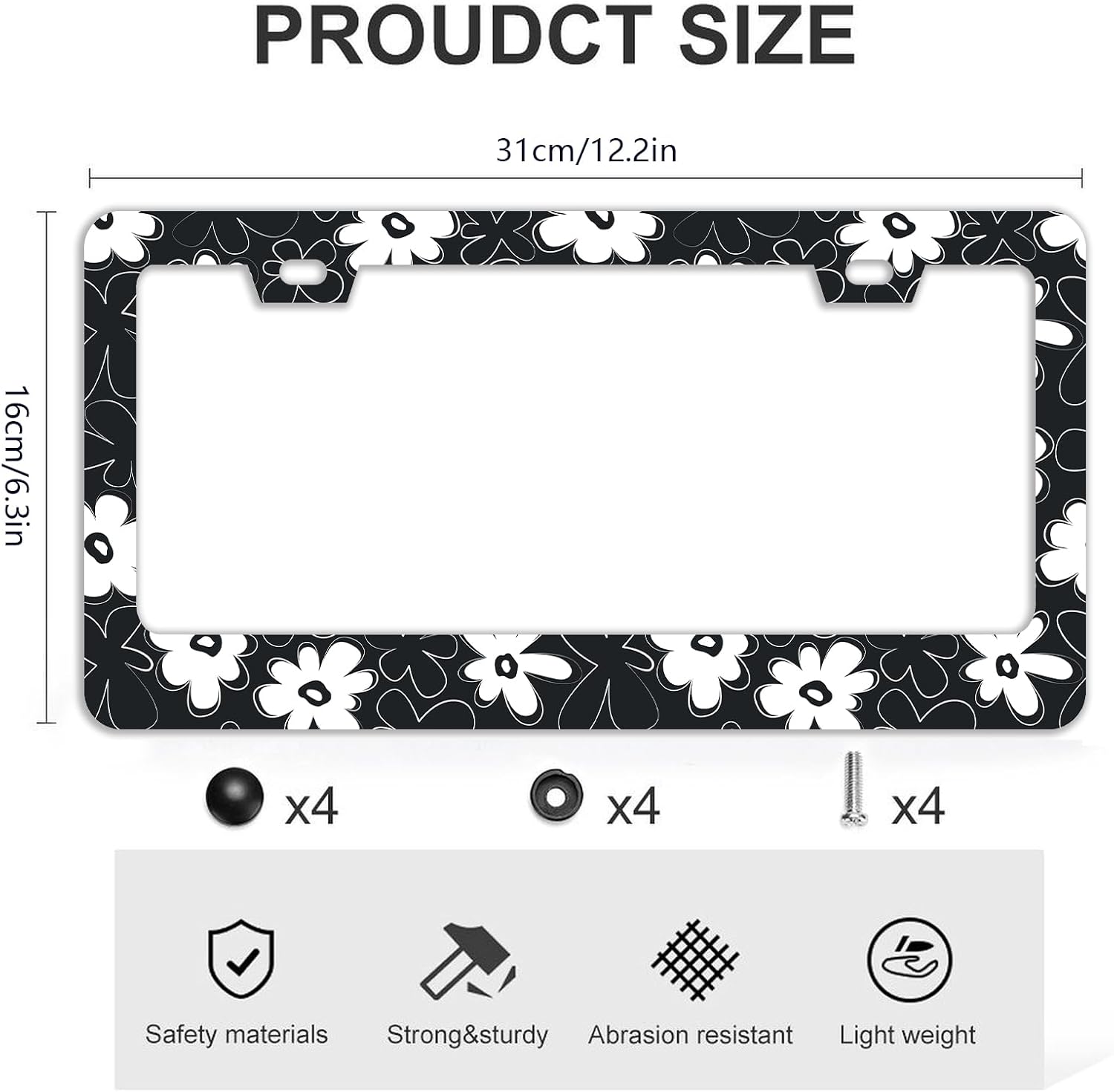 Black and White Flowers License Plate Frames - 2 Pcs Set 2 Holes Stainless Steel Metal Auto Car Accessories Decoration License Plate Frame Cover Size 6.3" x 12.2" Fit US Vehicles for Women Men Gift