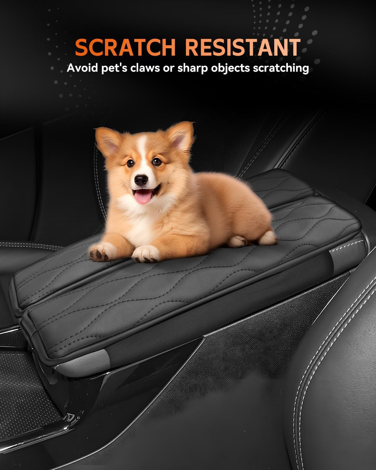 - [Easy To Install] Designed with a Velcro strap to secure it to the center console (no tools required). With super stretch and pull resistance, it will not change the open/close function of the armrest box.