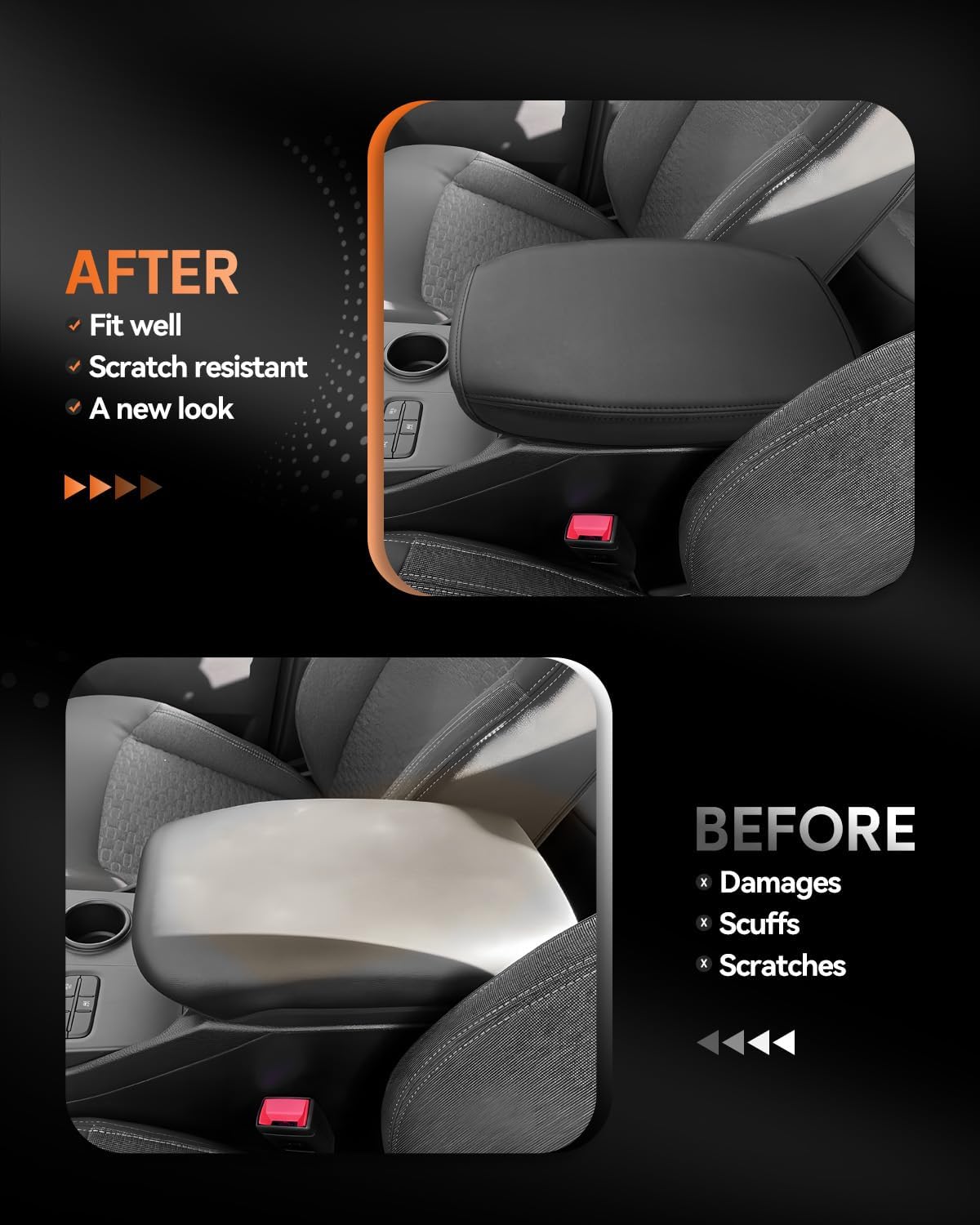 - [Easy To Install] Designed with a flexible elastic band to secure it to the center console (no tools required). With super stretch and pull resistance, it will not change the open/close function of the armrest box.
