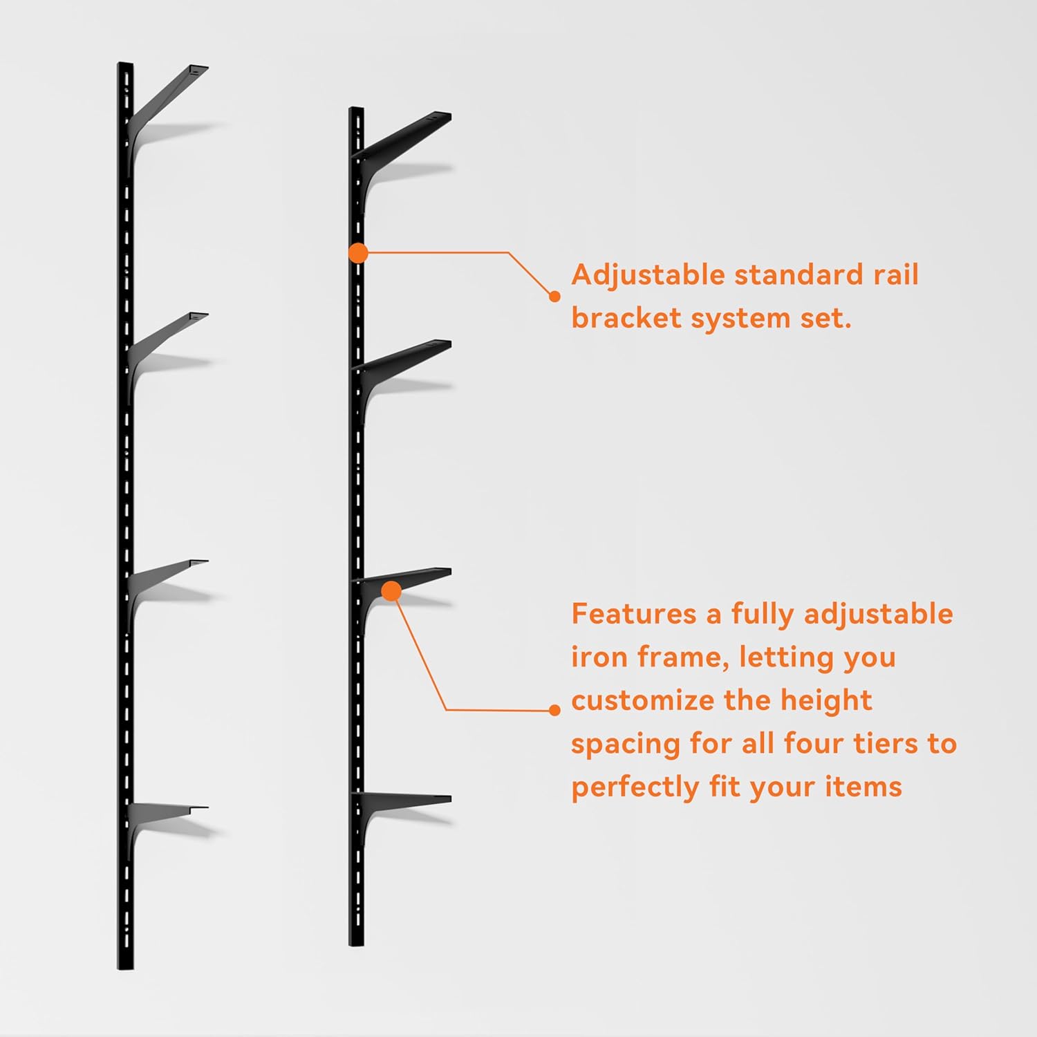 - 【Adjust Different Hight】You will get 3 pieces of shelf rails for this garage shelves and 18 pieces of double track brackets, you can adjust the different hight according your wall's space.Enough to keep you covered for big or small renovation needs, fit tall items like ladders or short bins with zero limitations.