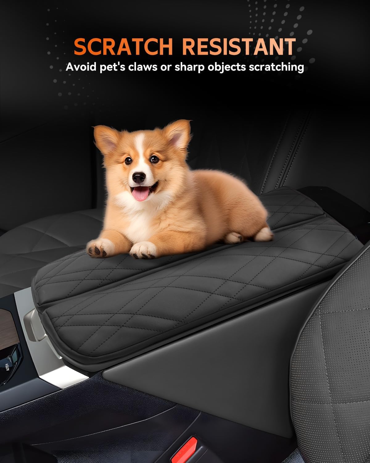 - [Excellent Scratch Resistance] The car center console mat is made of high quality PU microfiber leather, thick enough to keep out pet paws, dust and sticky fingers. The surface is waterproof, wear-resistant and durable, breathable, light weight and easy to wipe clean of dirt.