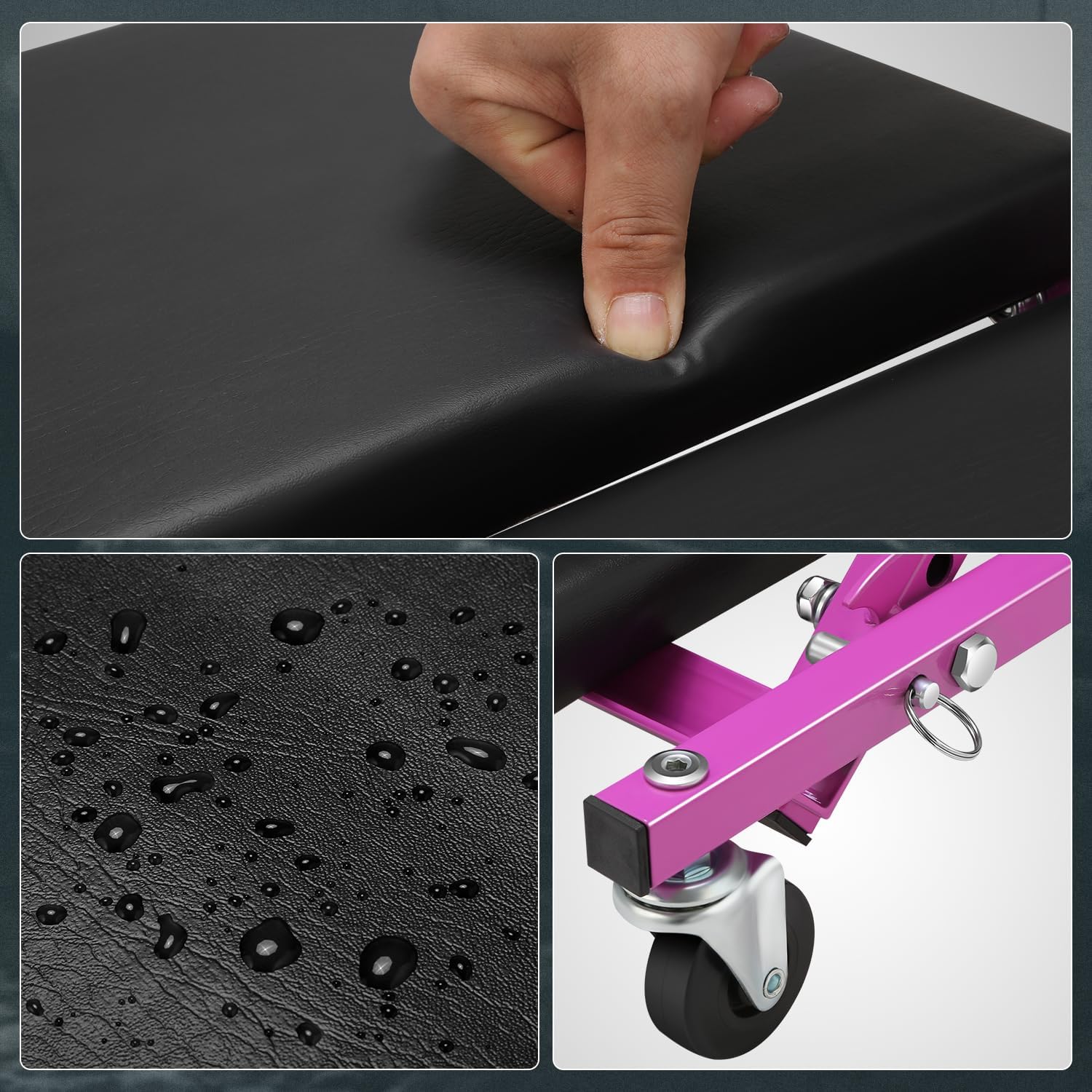 - ADVANCED DESIGN - This roller garage shop creeper with thick padded seat cushion will provide stability and comfort on the job. Unique design allows creeper to transform from a standard rolling creeper into a seat in seconds.